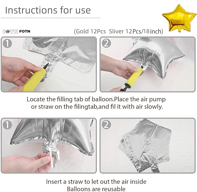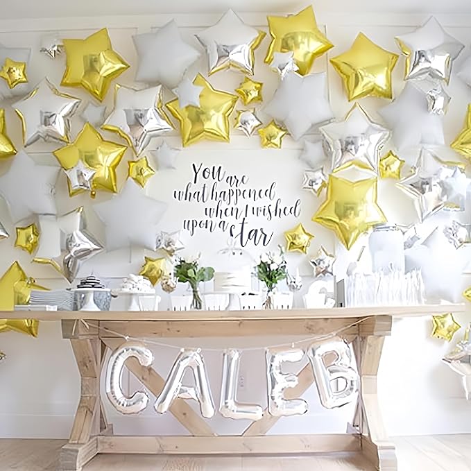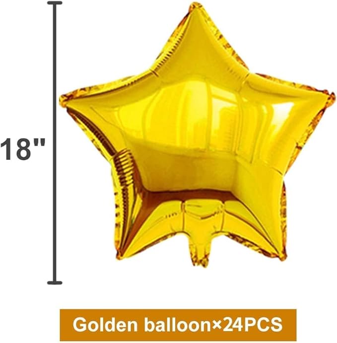 24-Pack Gold Star Balloons – 18-Inch Self-Sealing Mylar Gold Star-Shaped Balloons for Weddings, Birthdays & Baby Showers – Reusable, Eco-Friendly