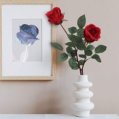 24-Pack: Red Rose Bud Stems with Silk Foliage - Lifelike Floral for Arrangements, Weddings & Home Decor, Floral Home by Artificial Flowers