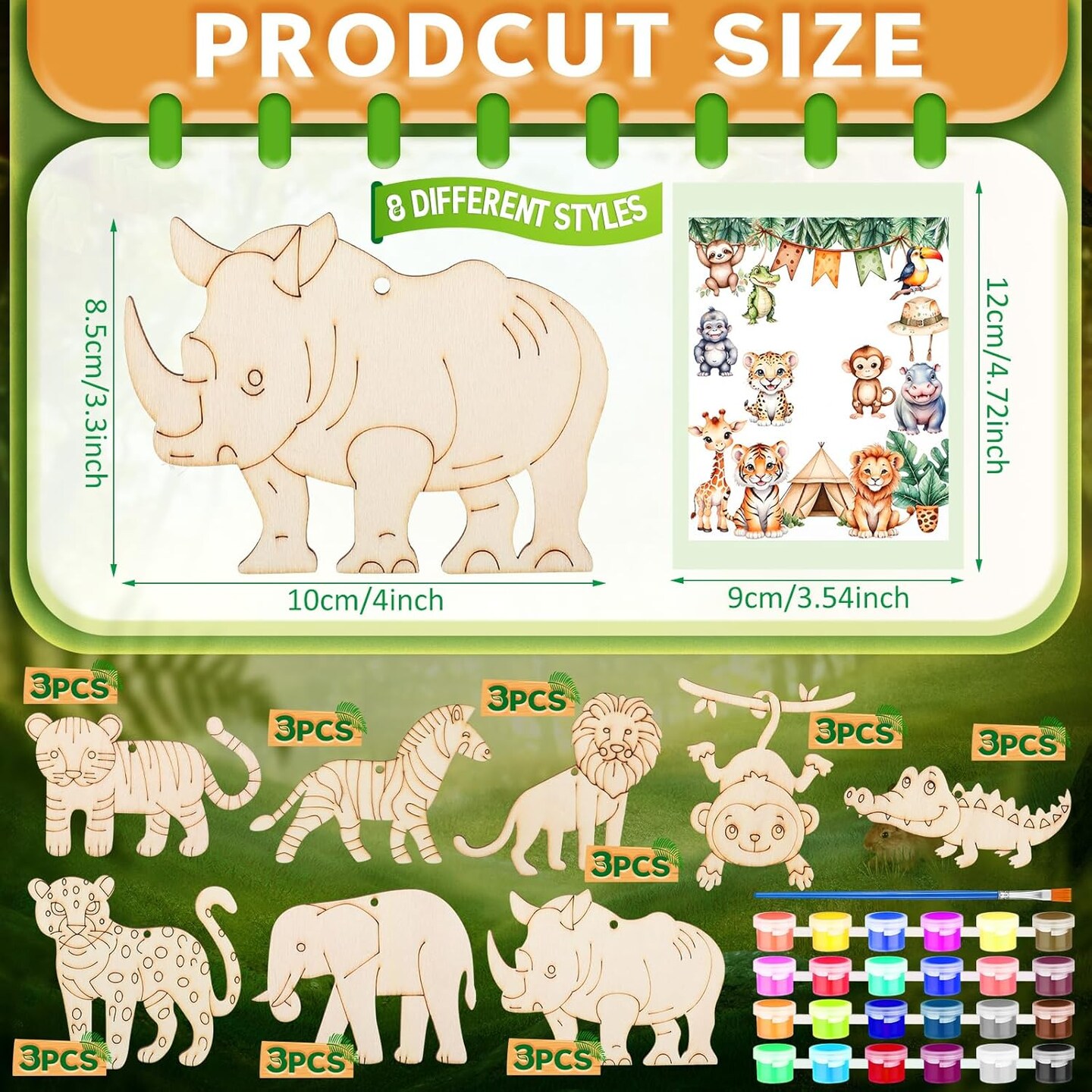 24-Pack Safari Party Favor Jungle Craft Kits – DIY Wooden Animal Painting & Coloring Crafts for Wild Animal Birthday Goodie Bags, Gifts, and Prizes