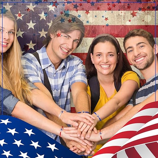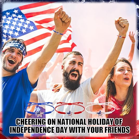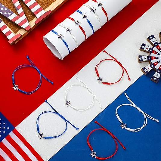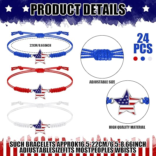 24pc Patriotic Woven Bracelet Set – Red, White & Blue Adjustable Friendship Jewelry