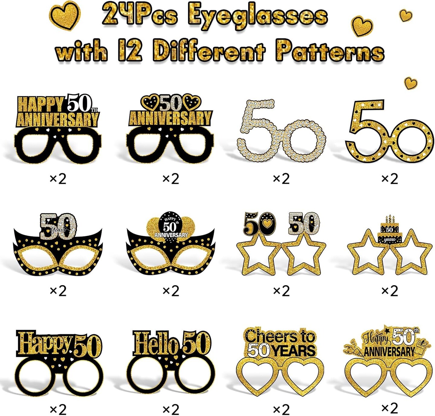 24pcs 50th Anniversary Paper Eyeglasses Decorations