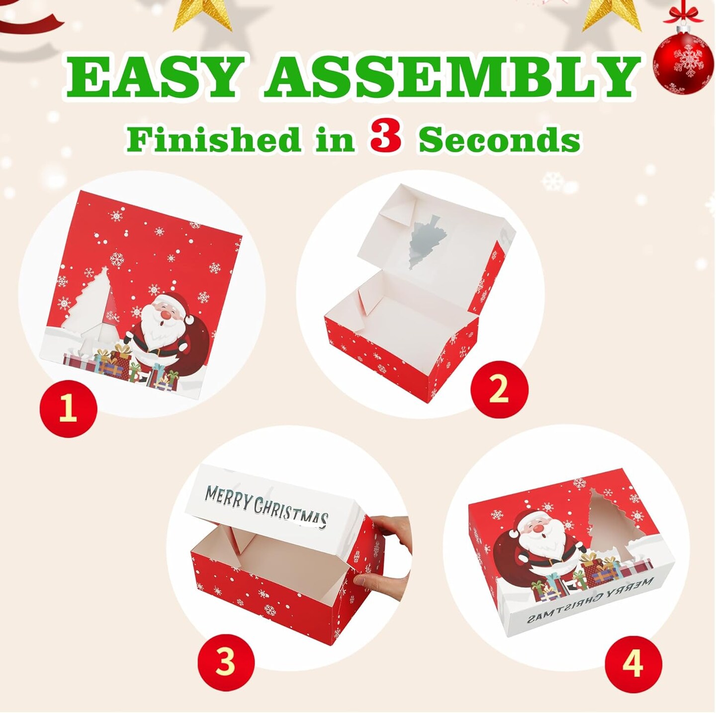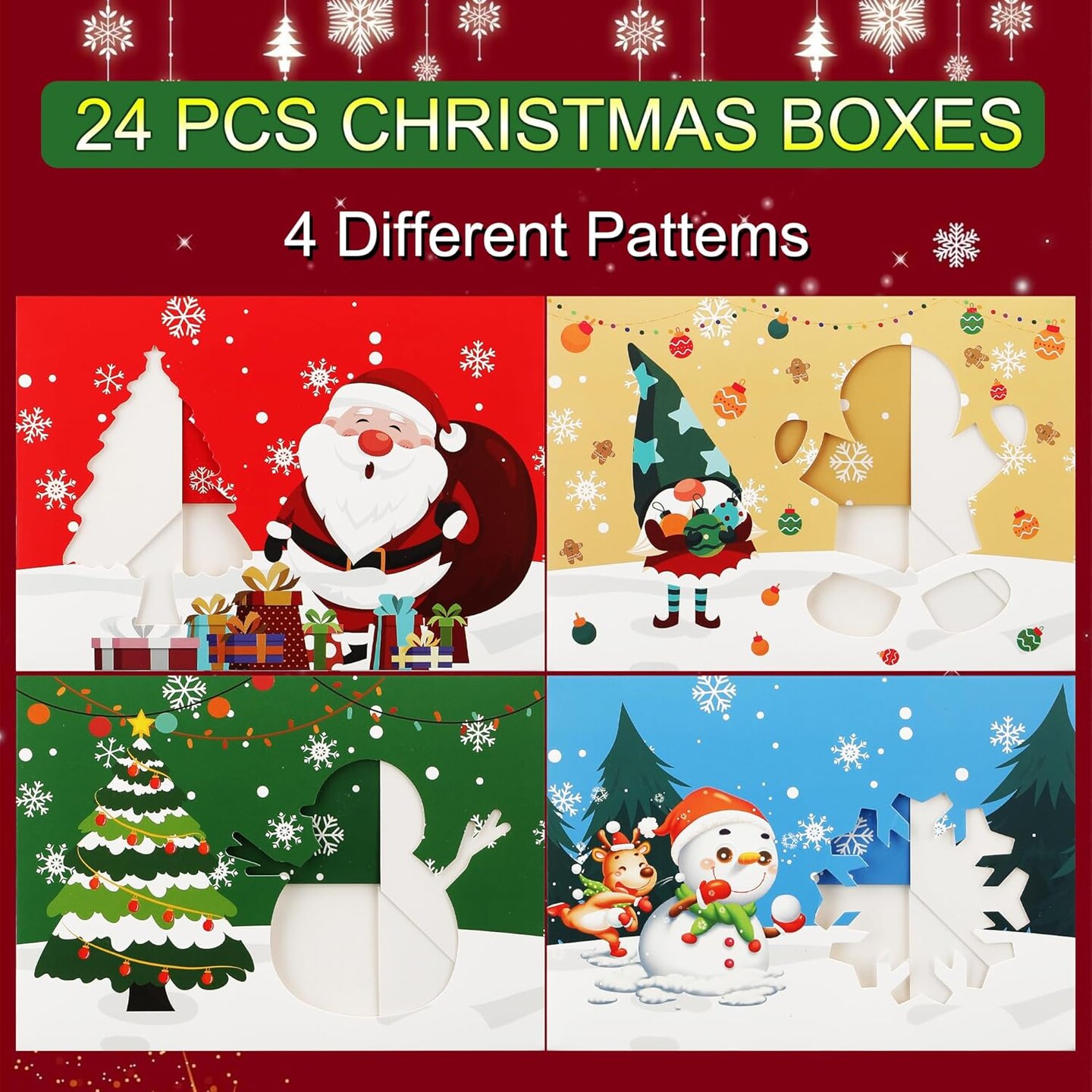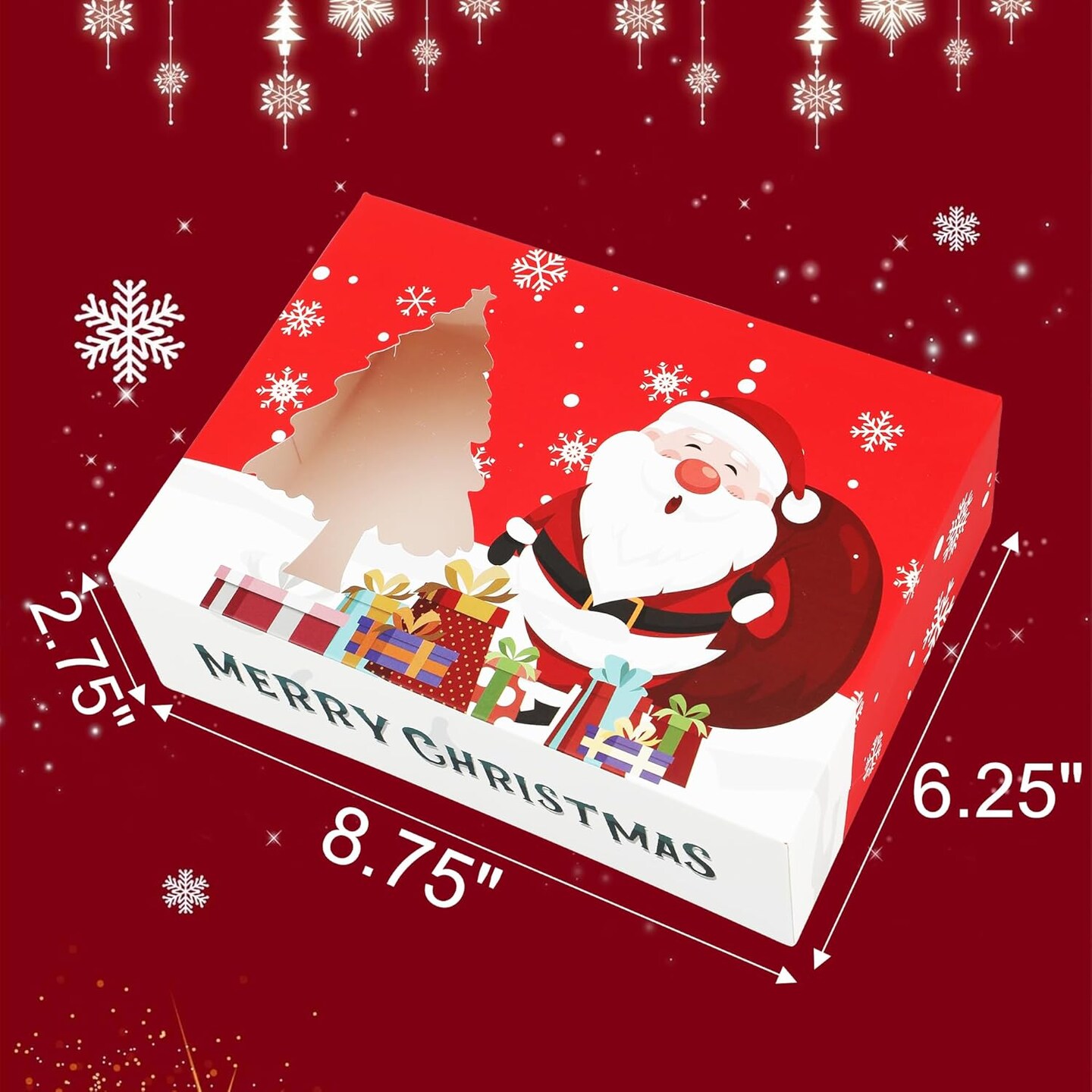 24PCS Christmas Cookie Boxes for Gift Giving, White Christmas Bakery Boxes with Window, Christmas Treat Boxes for Mini Cake Pastry Dessert Cupcakes Candy Donut