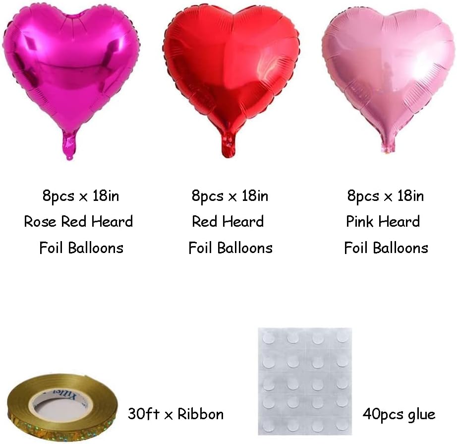 24pcs Heart Shape Foil Balloons Red Kit 18"