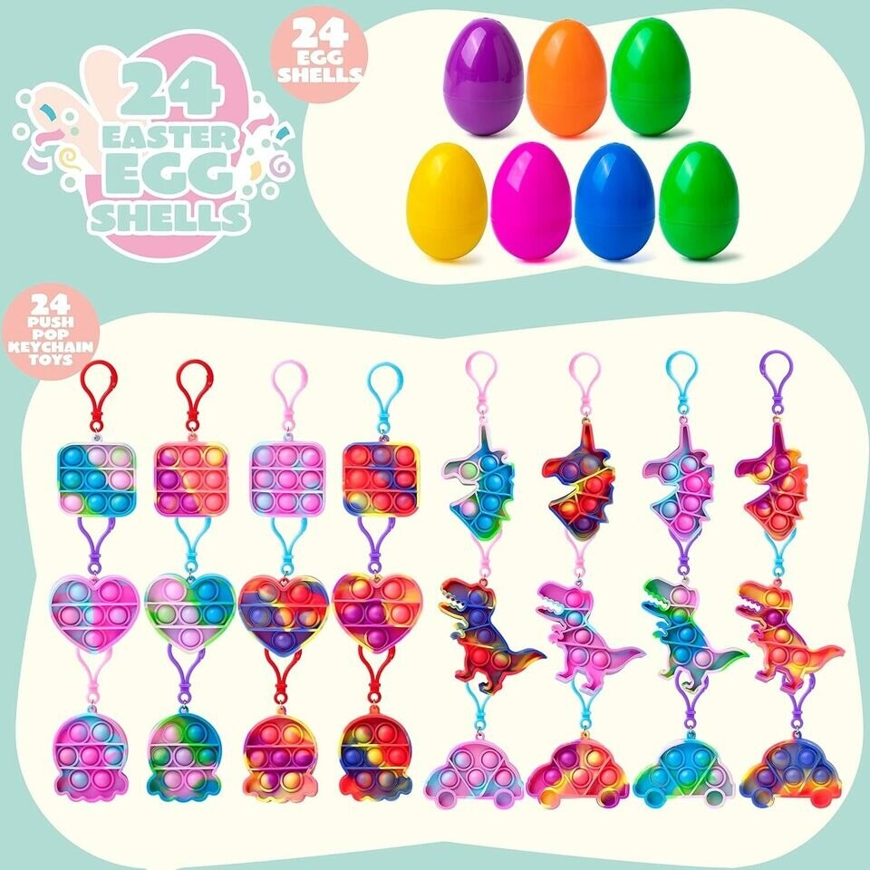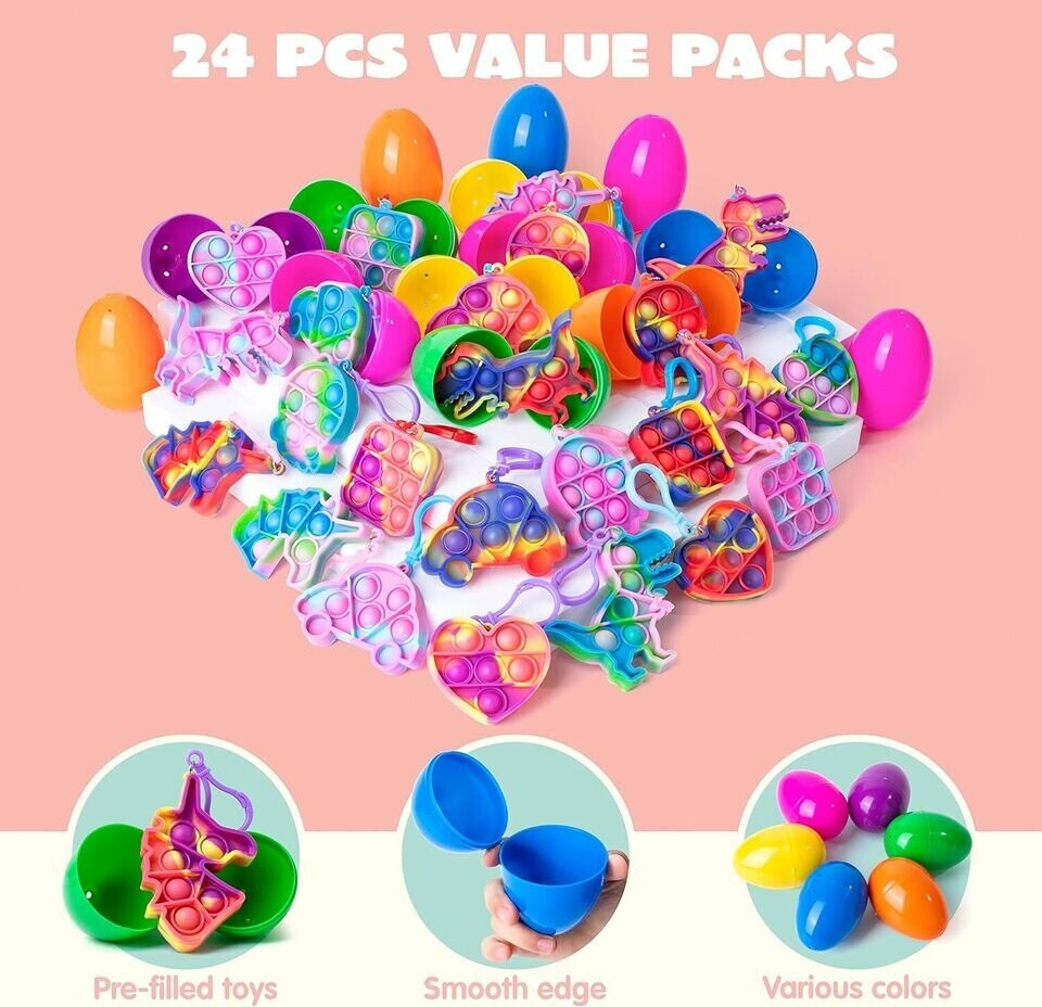 24Pcs Pre Filled Easter Eggs with pop Keychain Toys for Easter Theme Party Favor