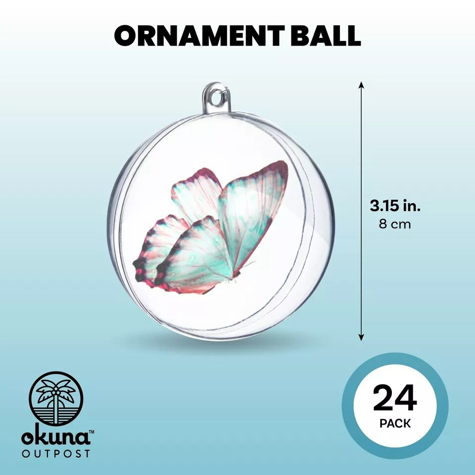 24x Clear Plastic Fillable Ornaments for Hanging Decoration DIY Art Crafts 3.15"