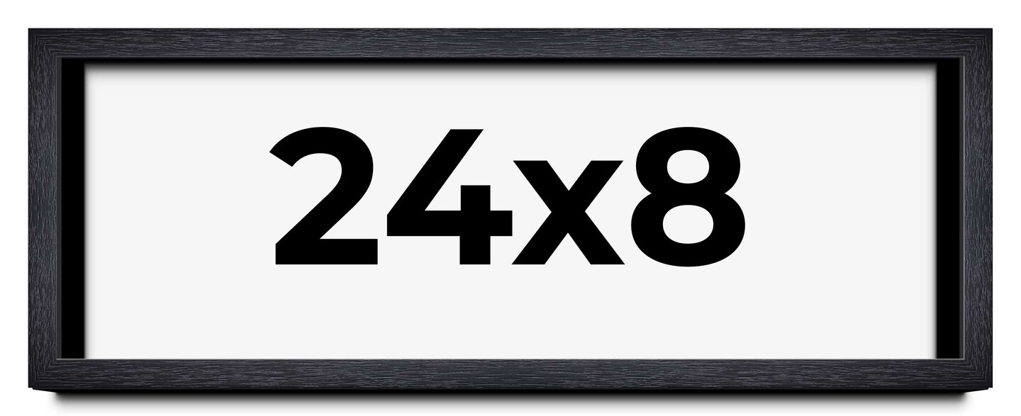 24x8 Shadow Box 1" Depth Black Picture Frame - UV Acrylic, Backing, Hanging Hardware