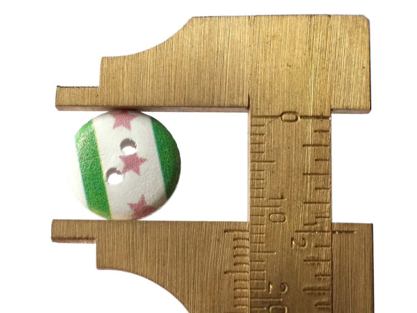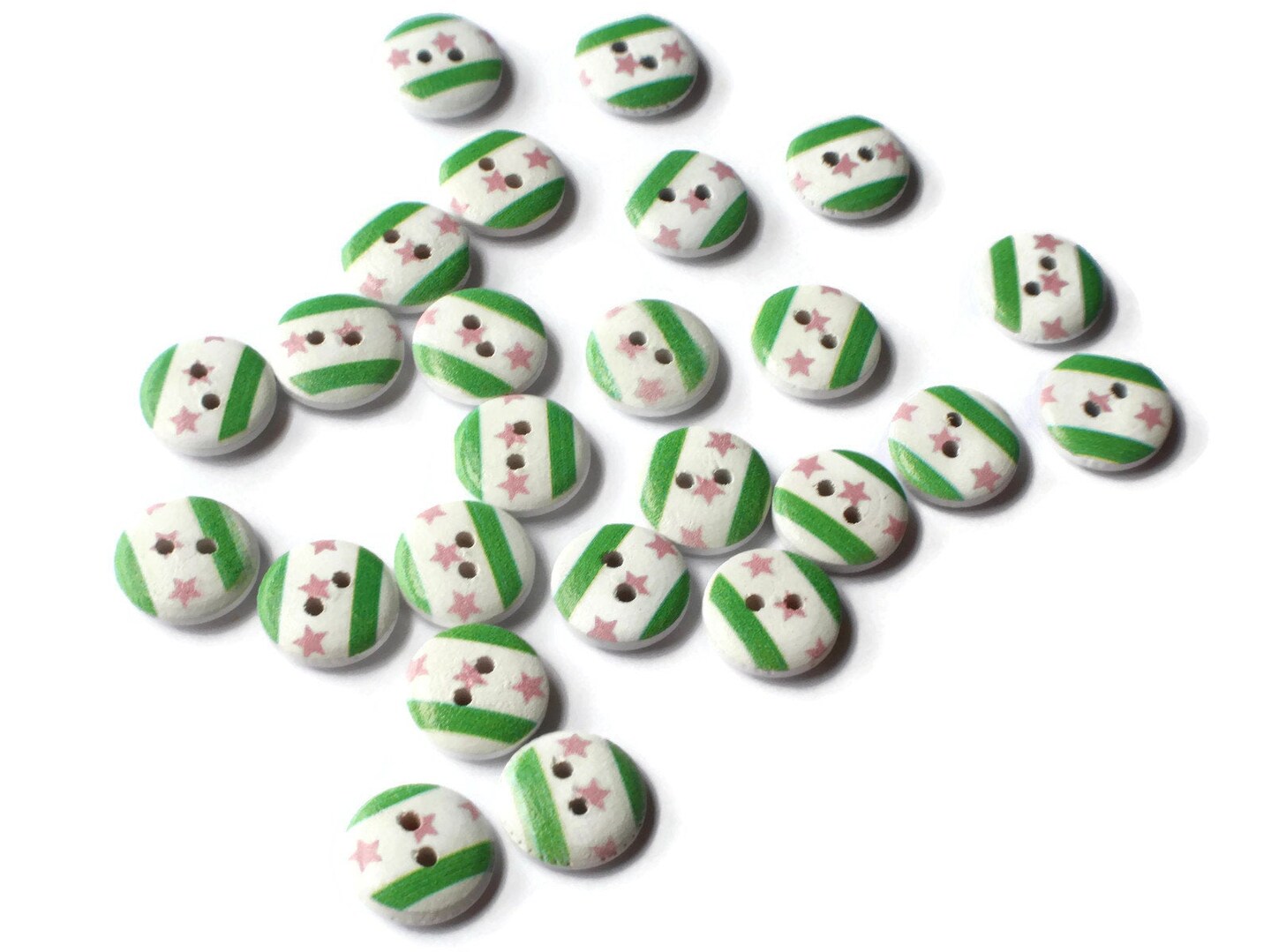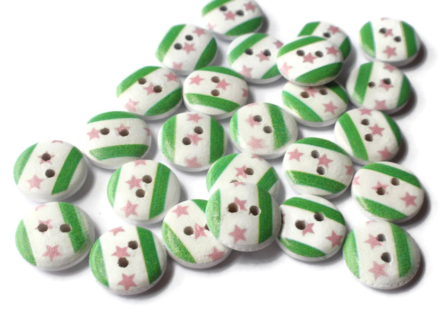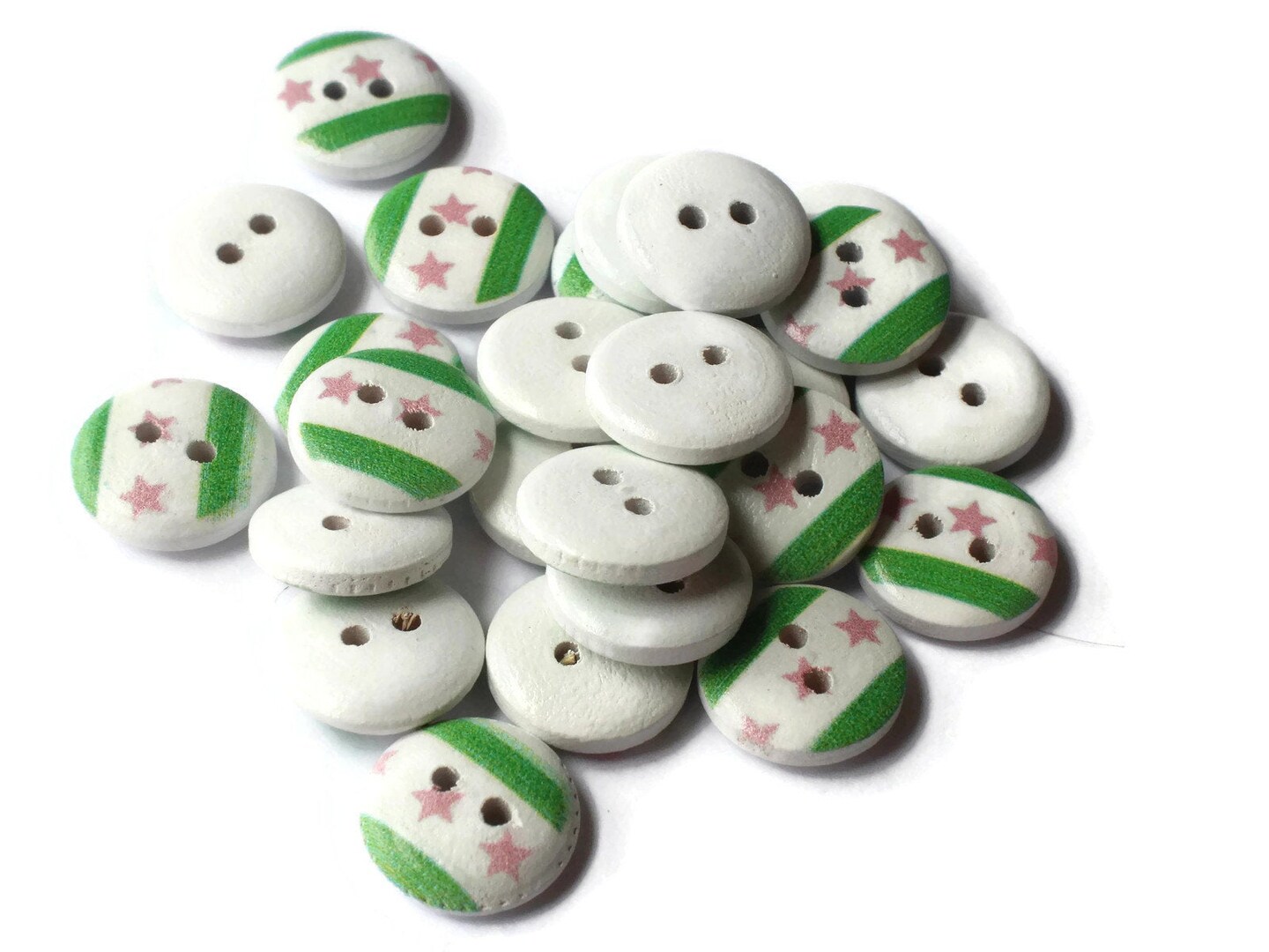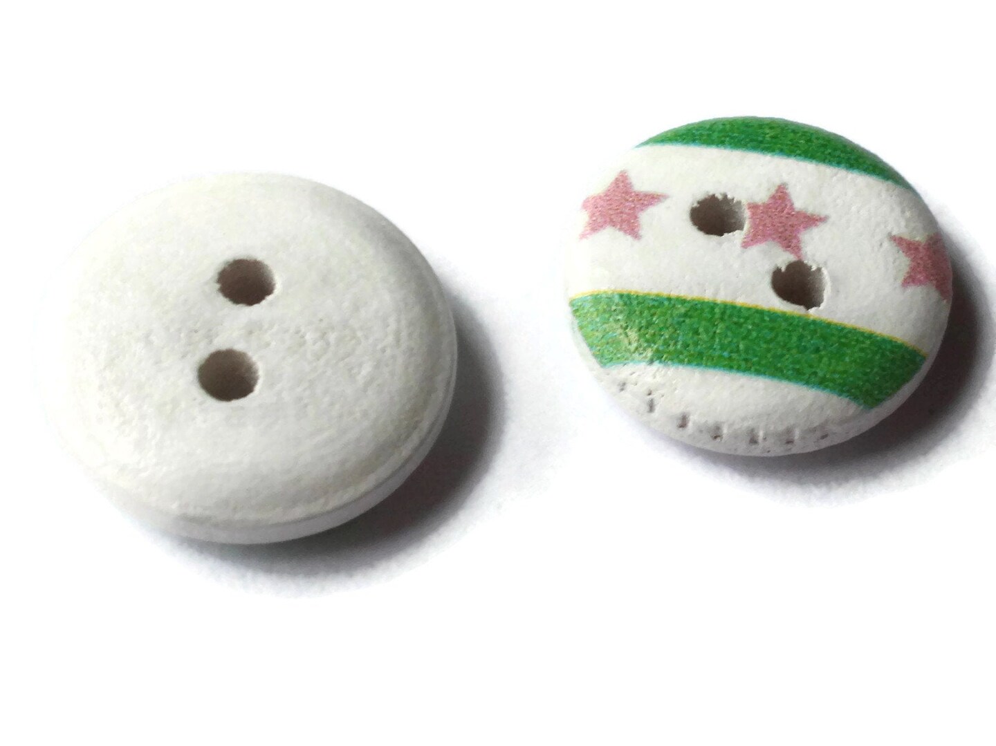25 13mm White Round Buttons with Pink and Green 2 Hole Loose Wooden Buttons