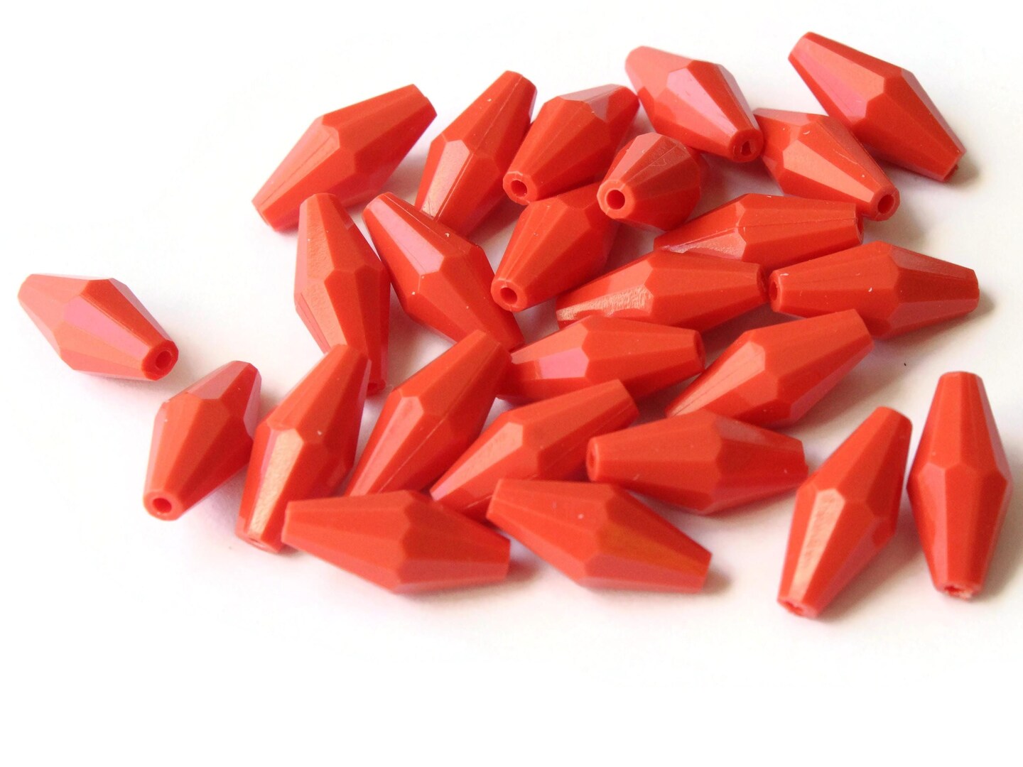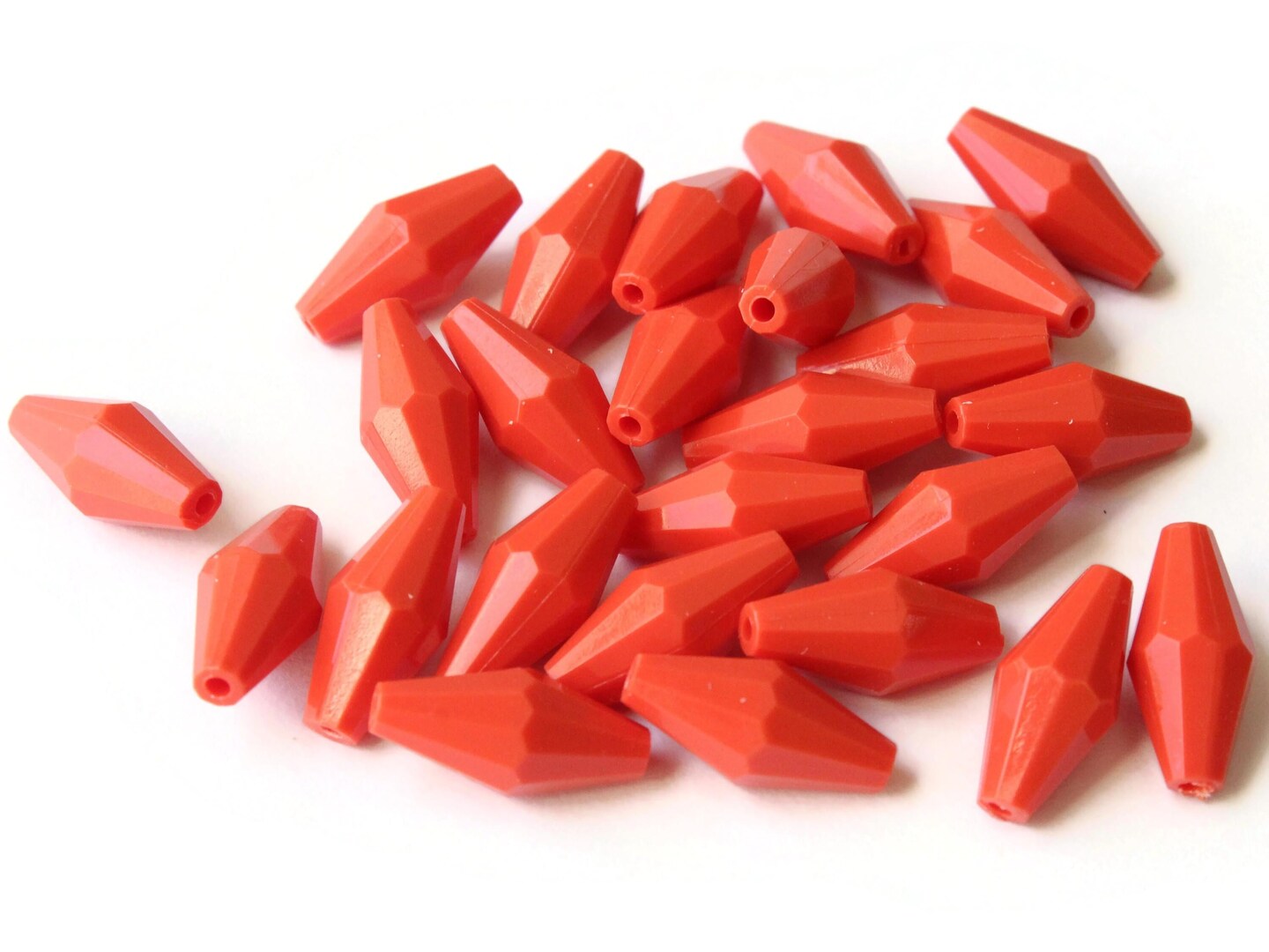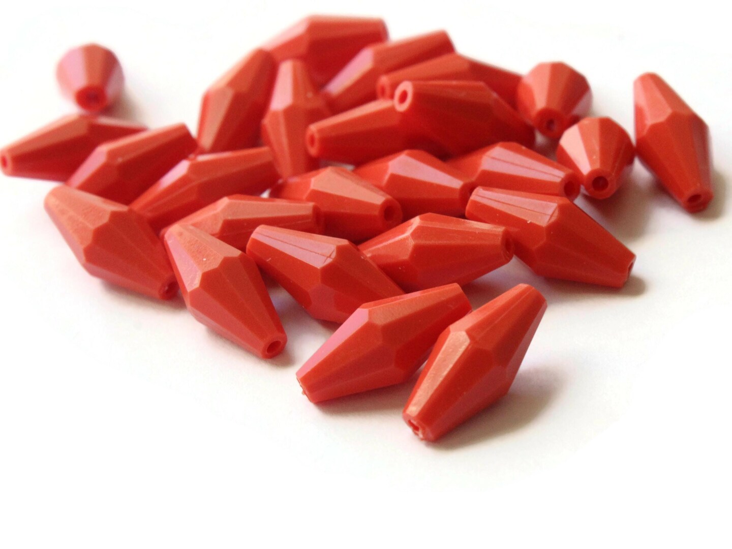 25 15mm Orange Vintage Plastic Faceted Bicone Beads