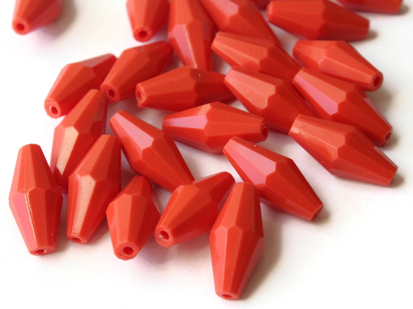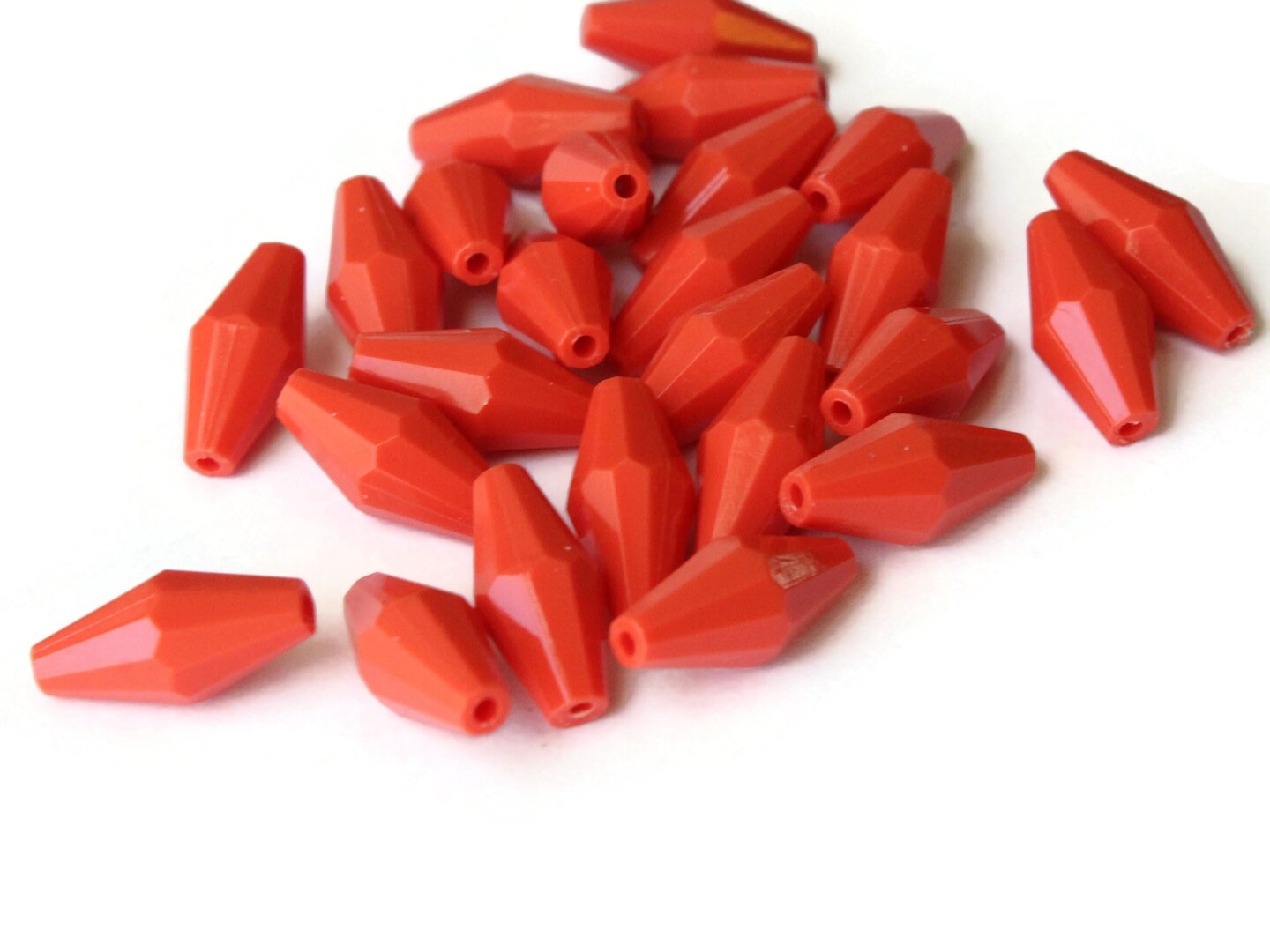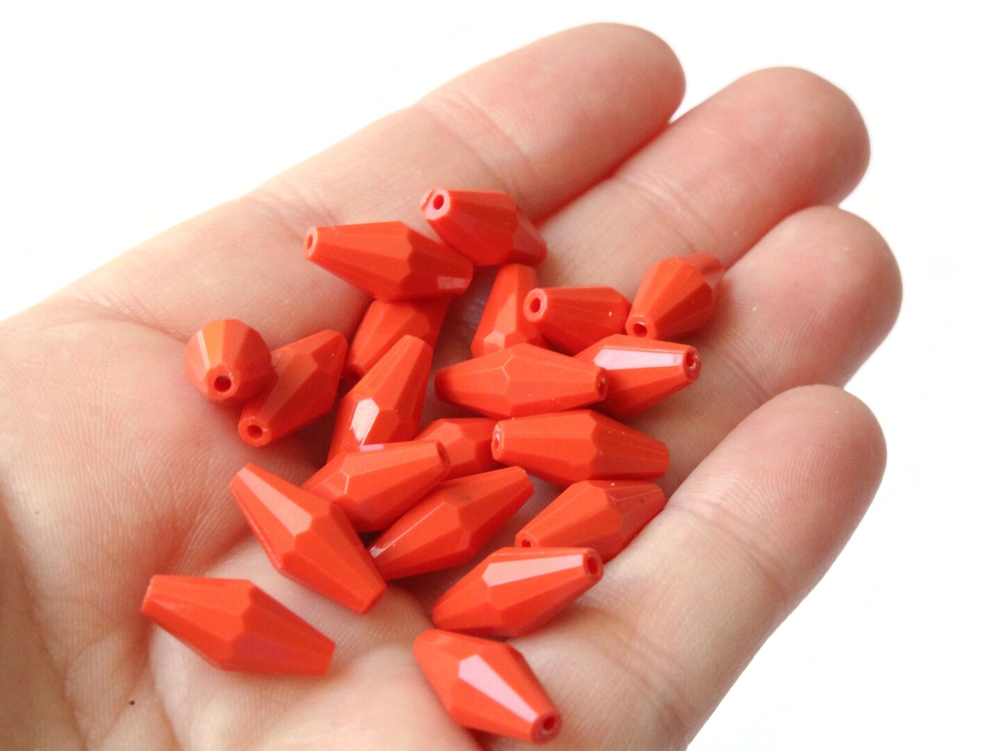 25 15mm Orange Vintage Plastic Faceted Bicone Beads