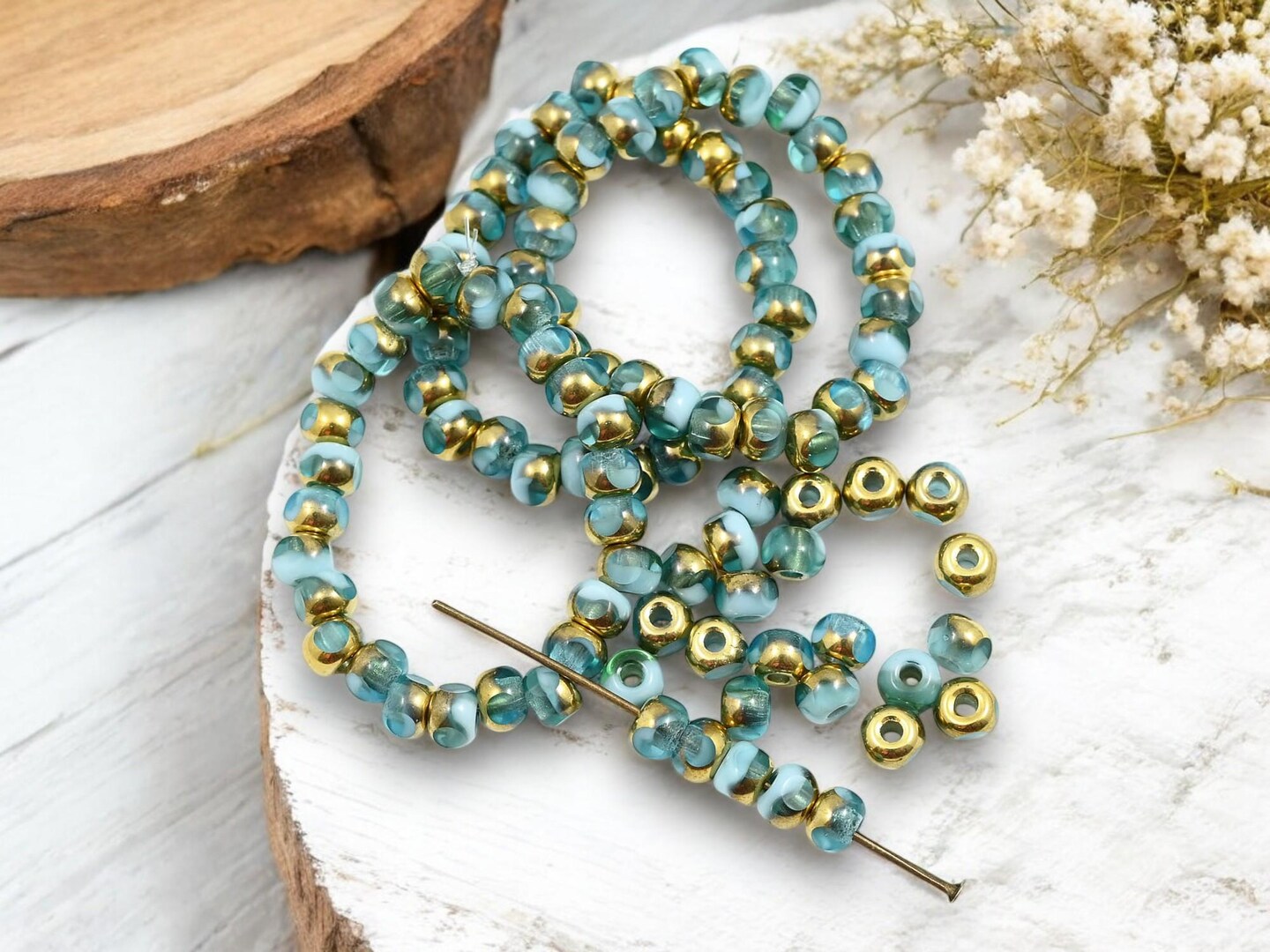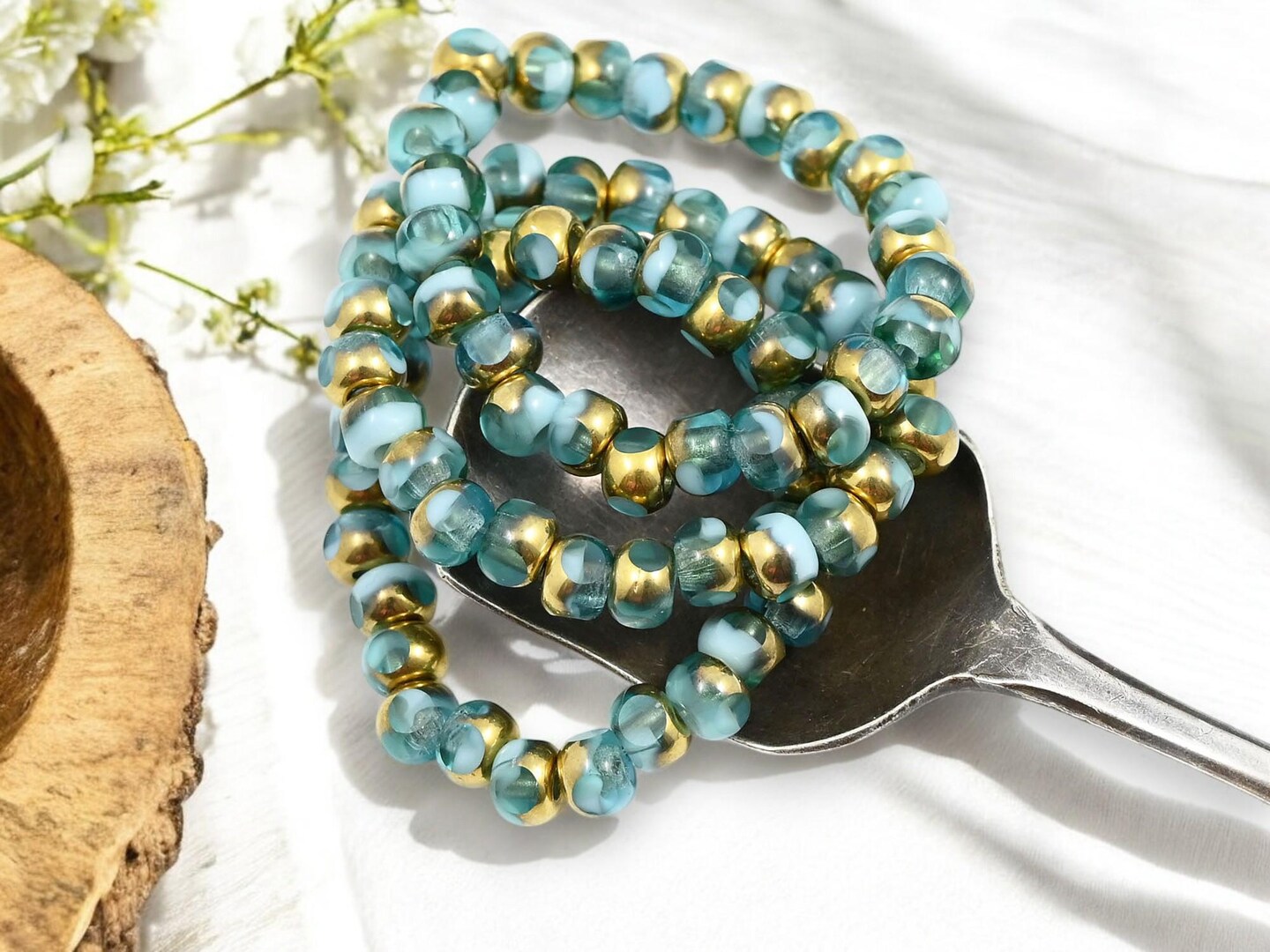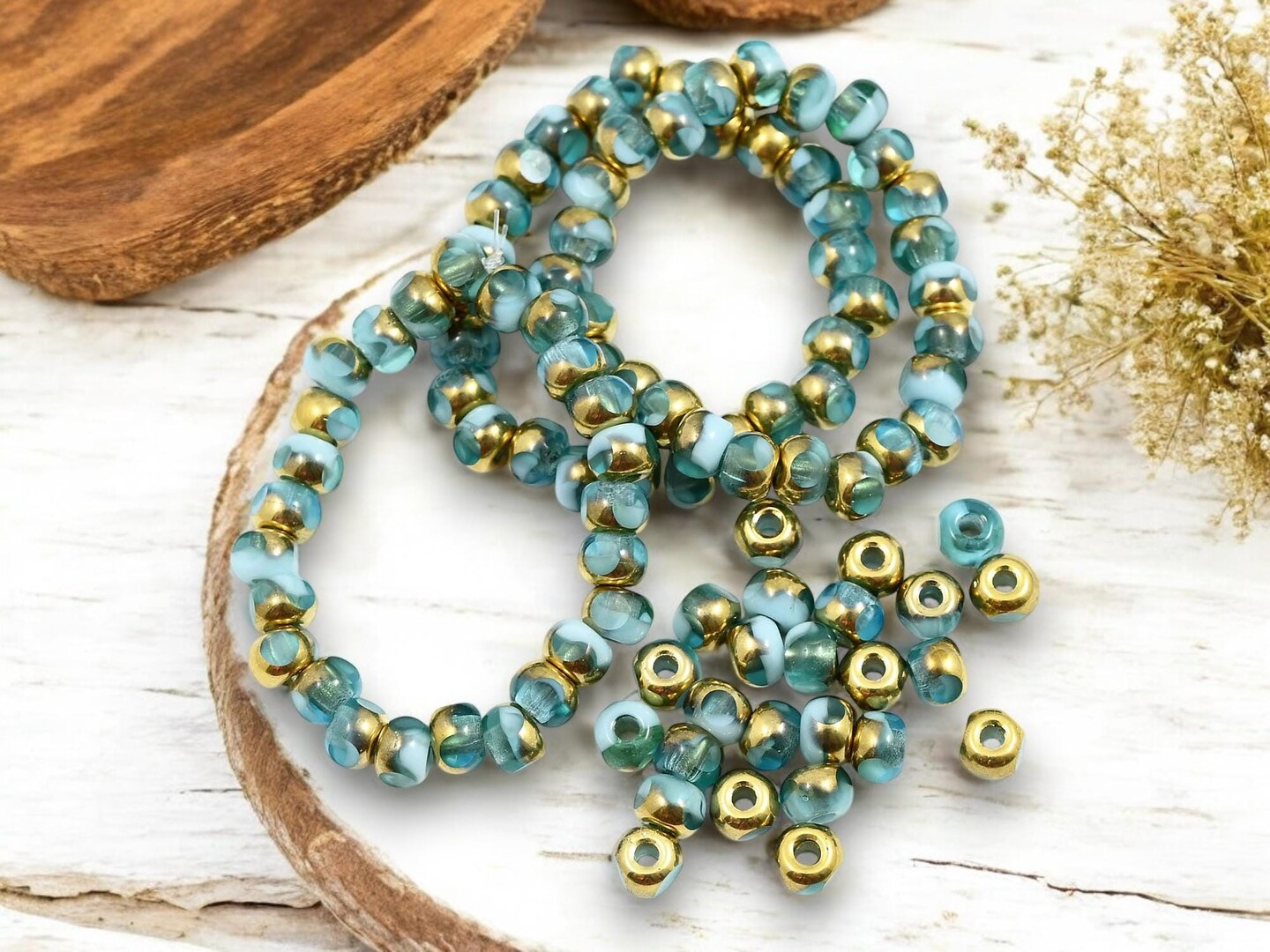 *25* 5mm Gold Washed Blended Sky Blue Trica Beads