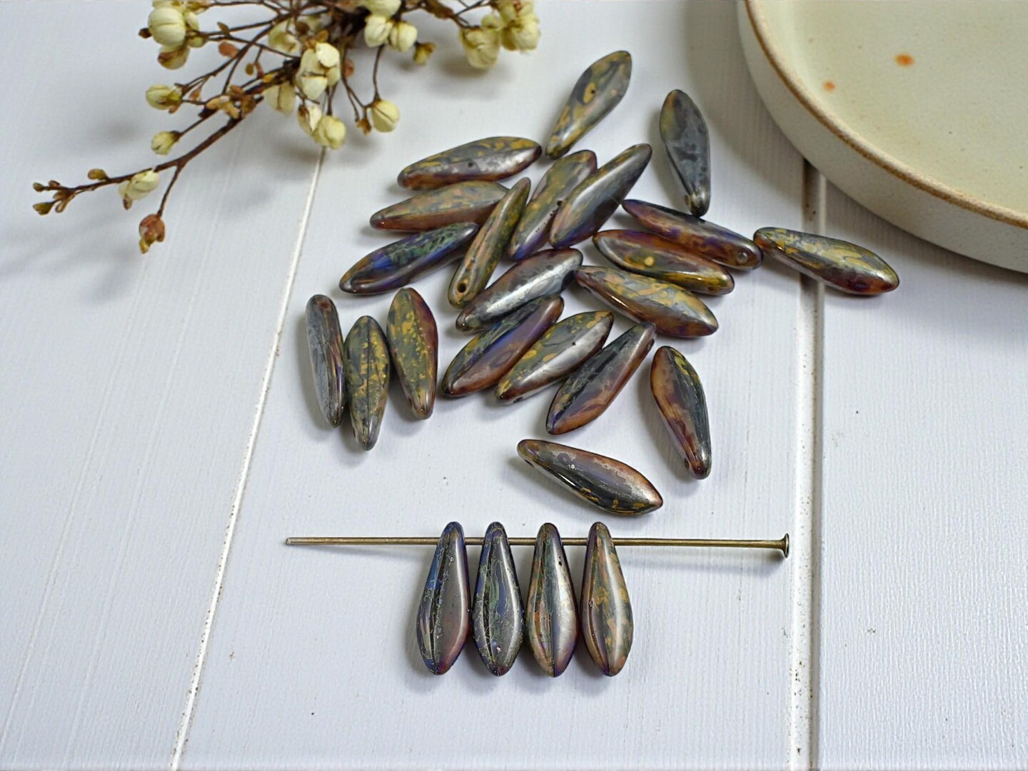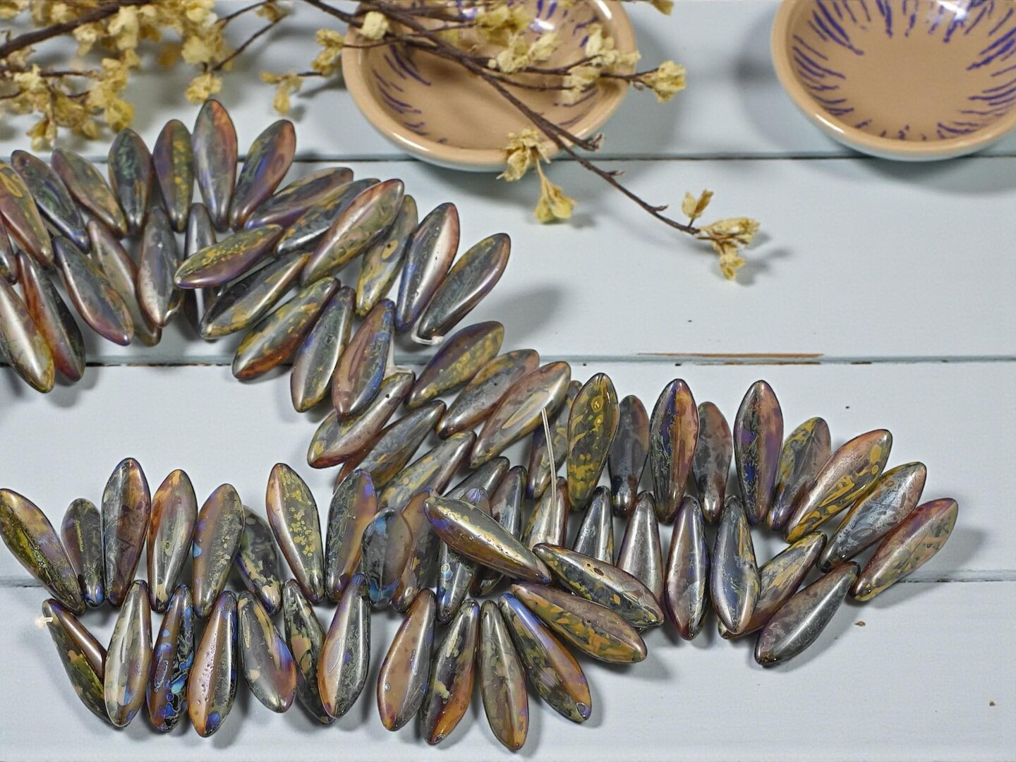 *25* 5x16mm Blended Dark Crystal Topaz Travertine Dagger Beads