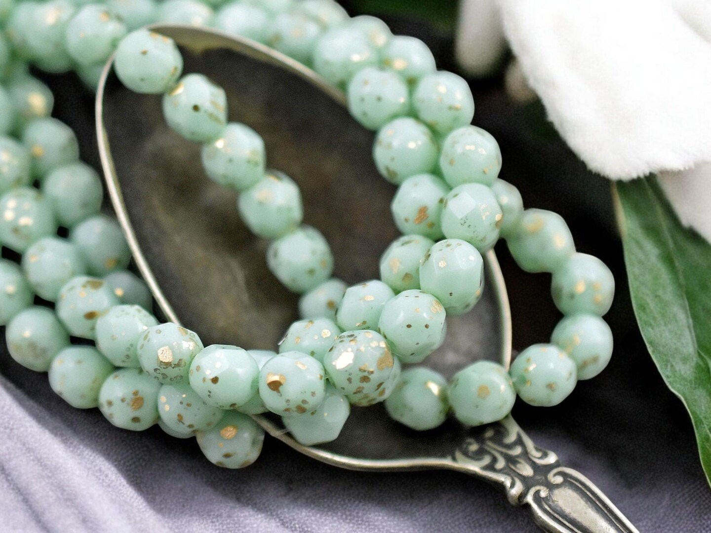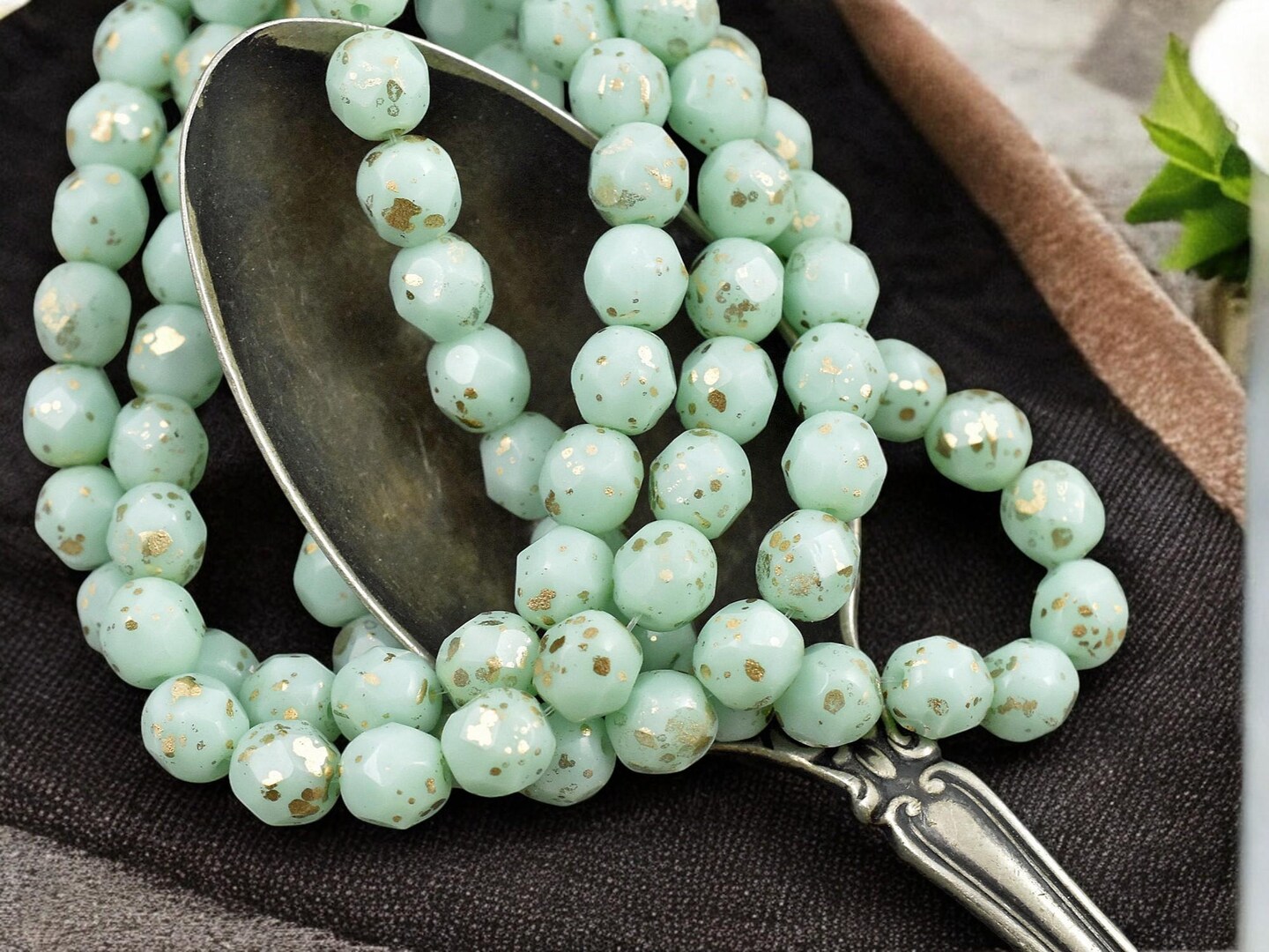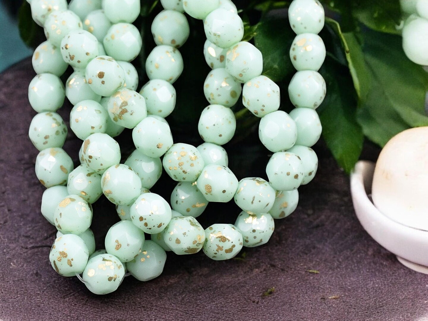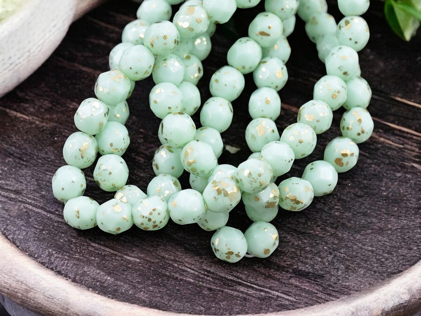 *25* 6mm Gold Speckled Mint Green Fire Polished Round Beads