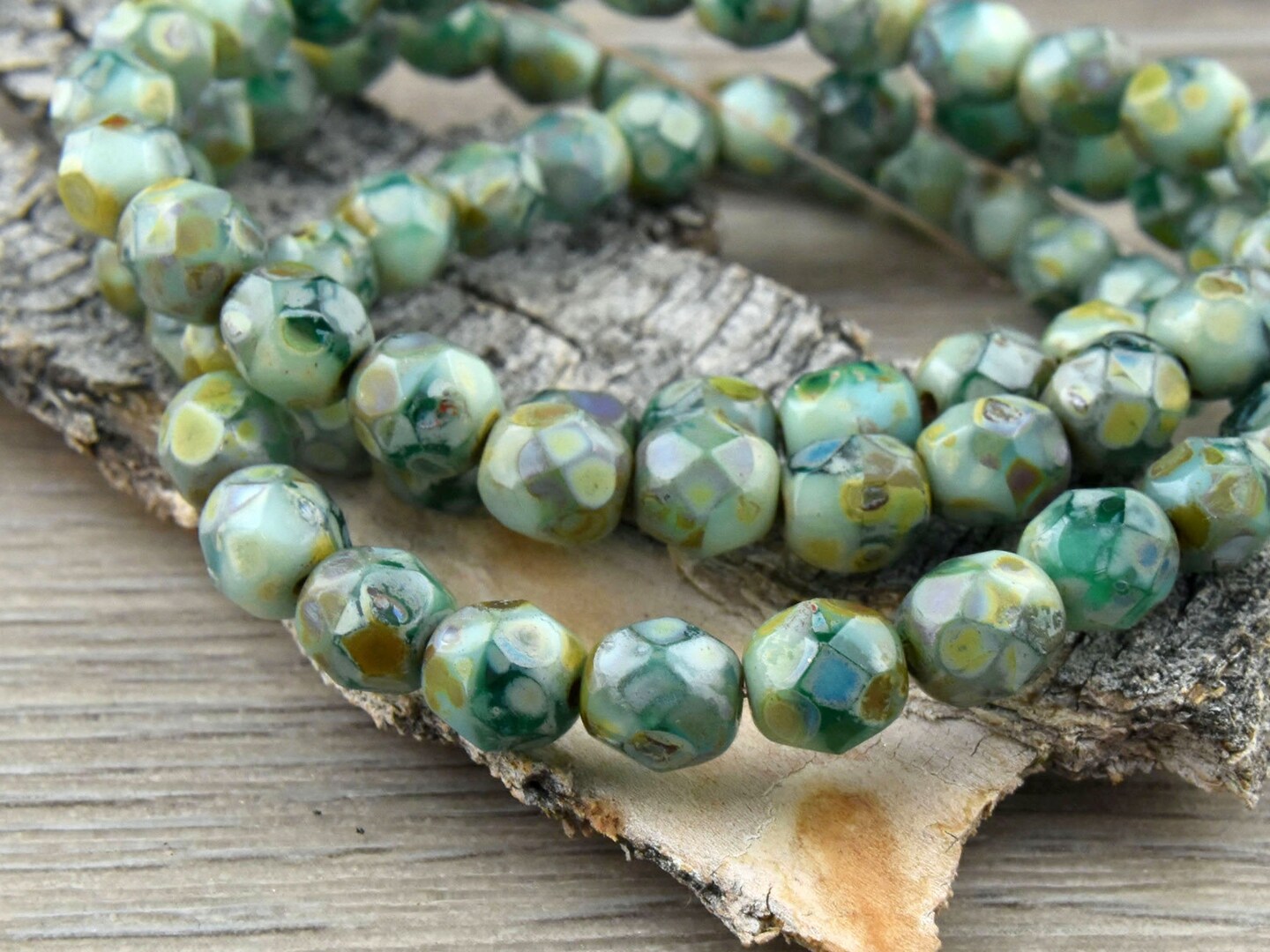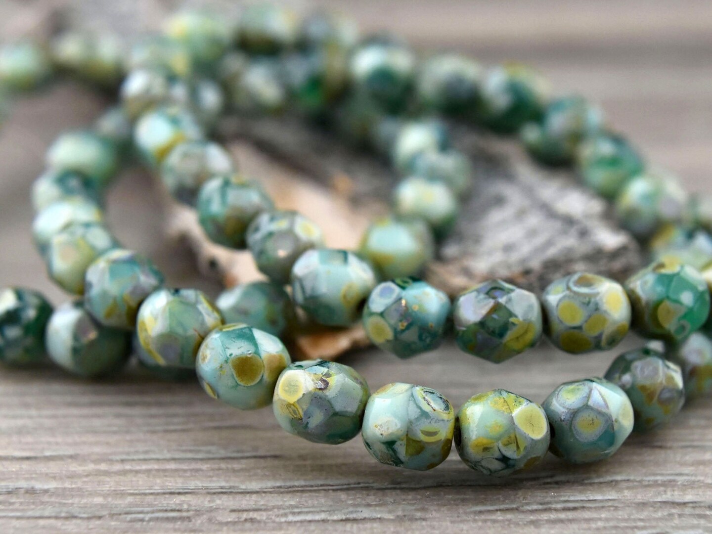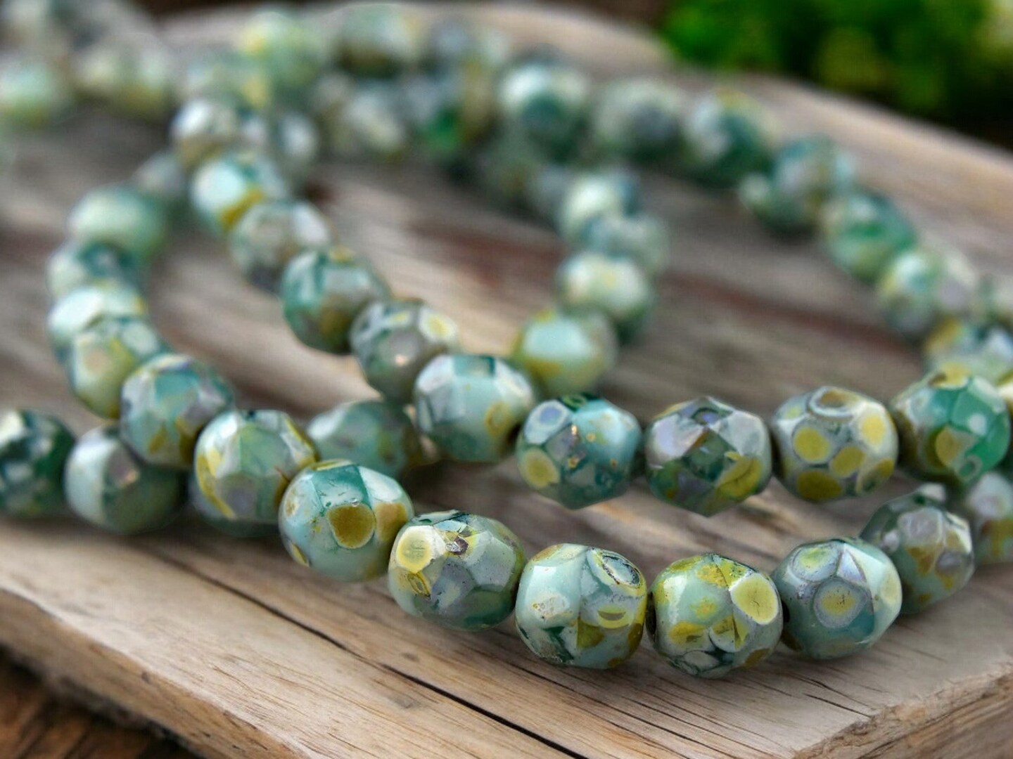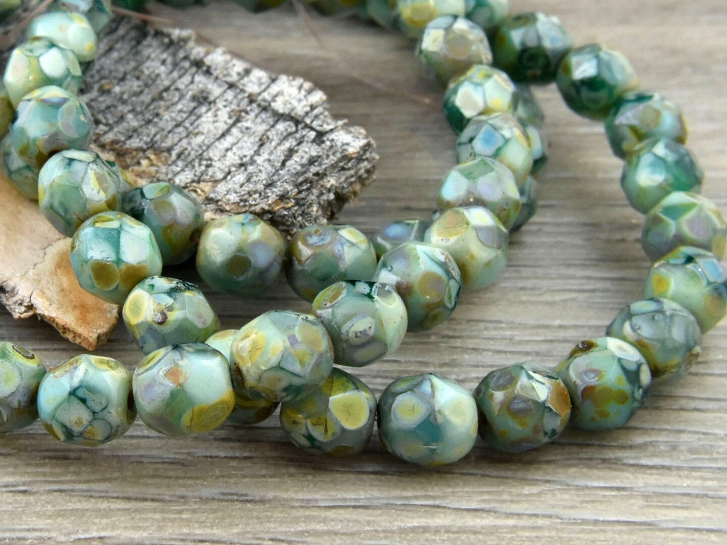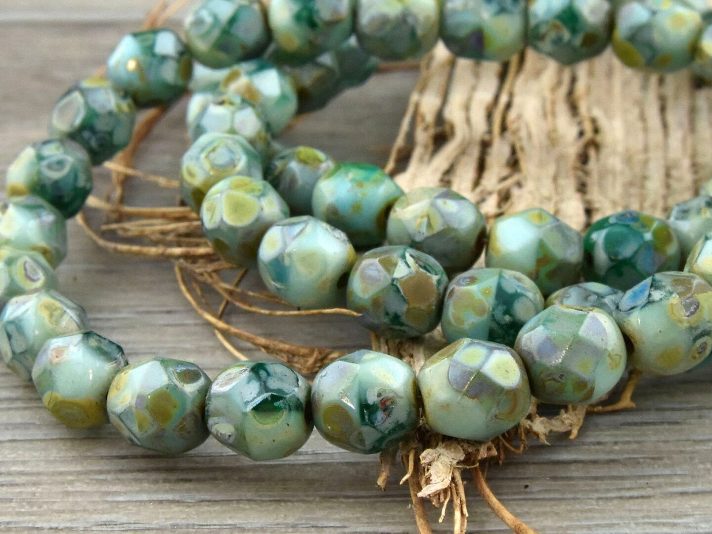 *25* 6mm Rustic Green Picasso Fire Polished Round Beads