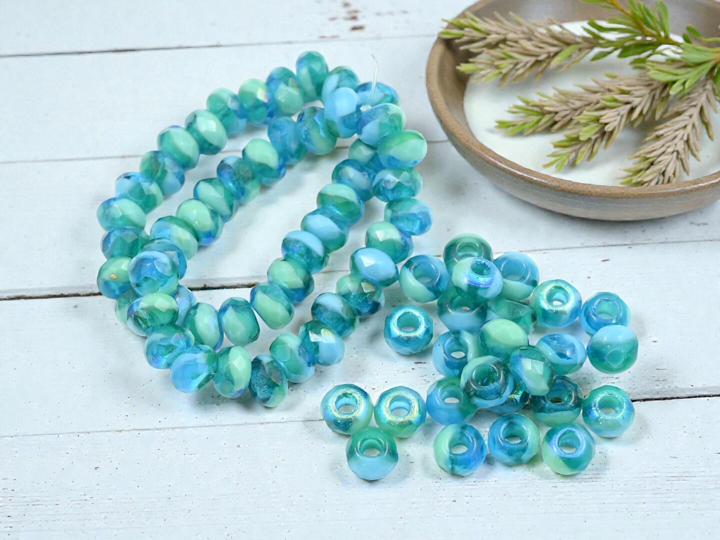 *25* 6x9mm Blended Turquoise Aqua AB Faceted Large Hole Rondelle Roller Beads
