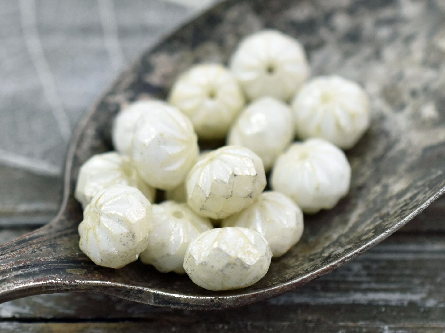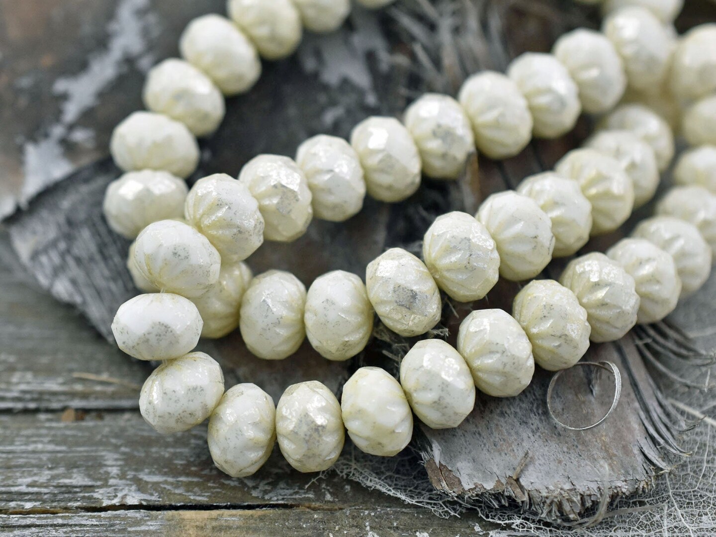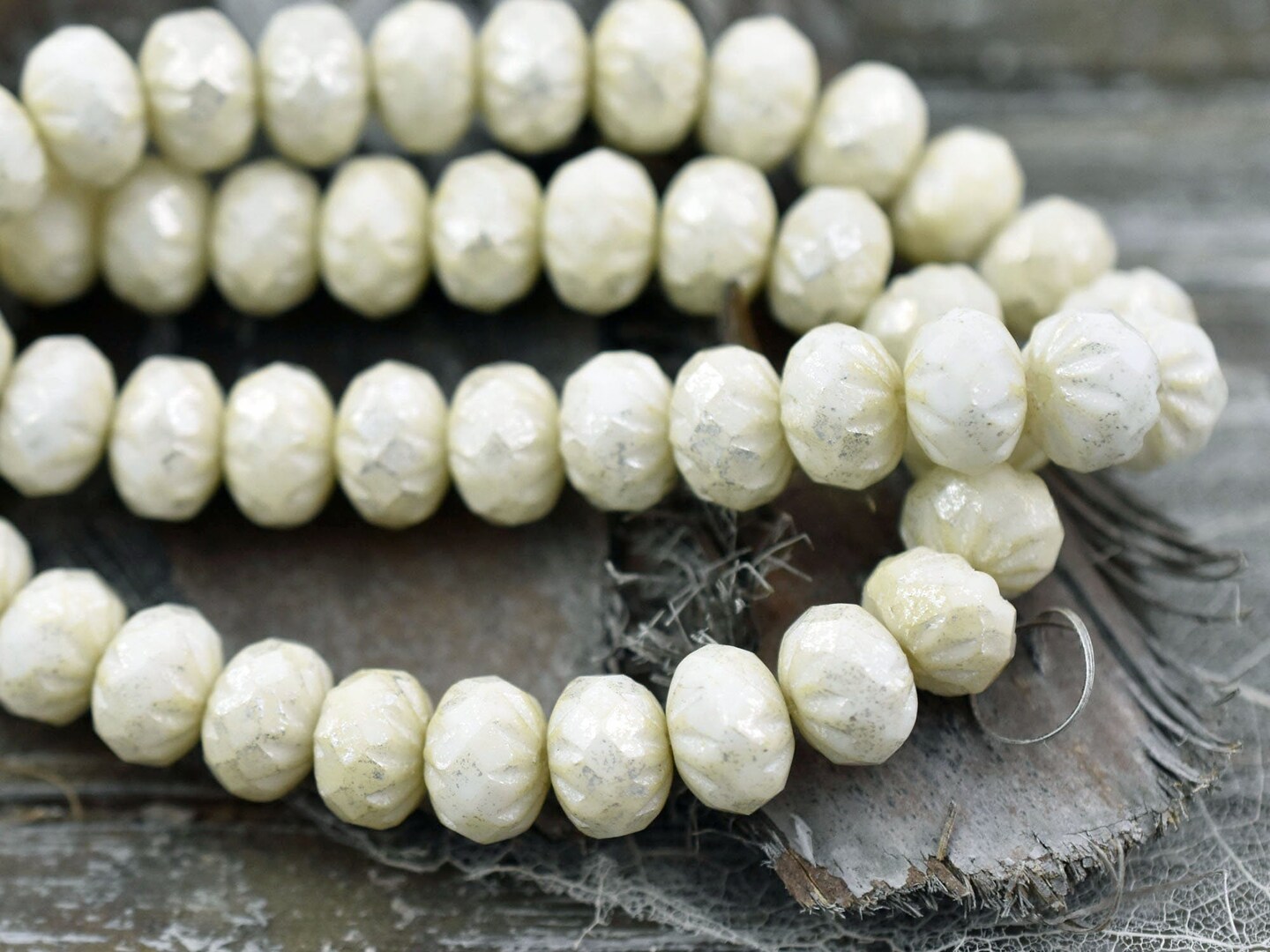 *25* 6x9mm Silver Mercury Washed Opaque Ivory Cruller Rondelle Beads