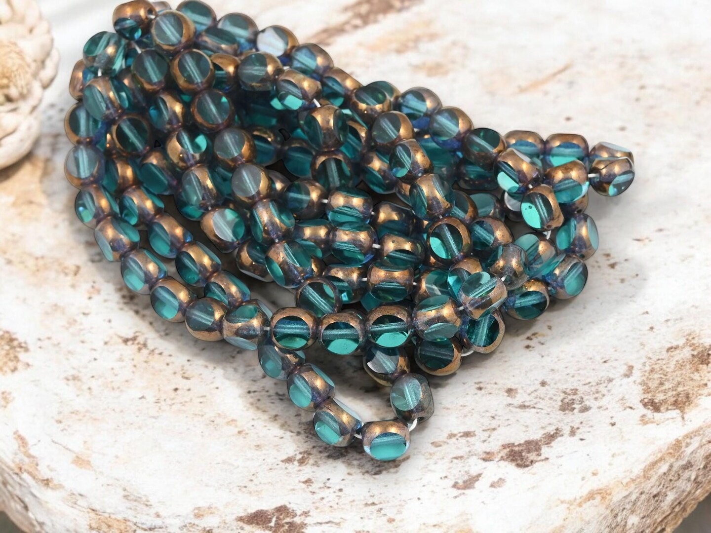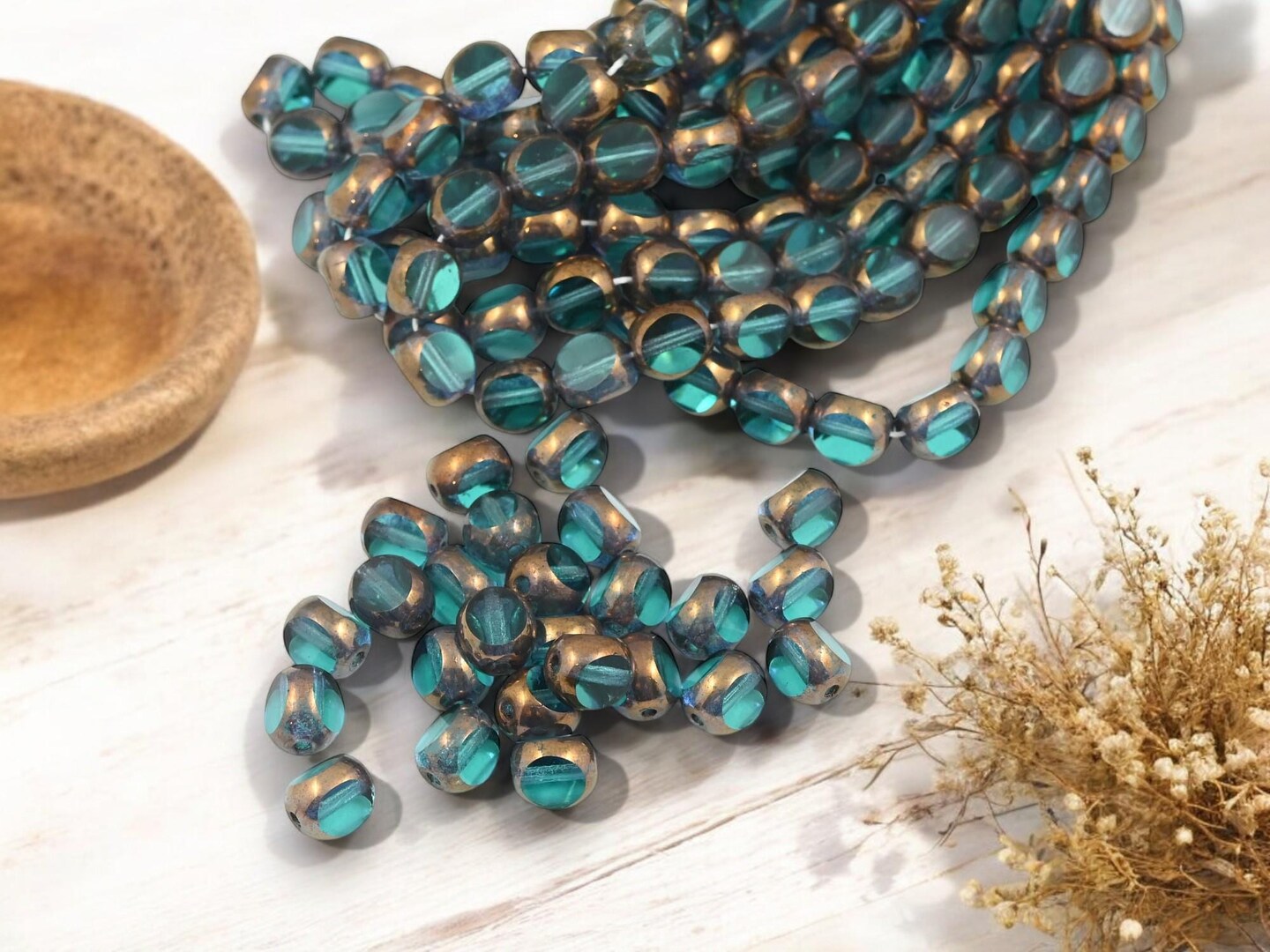 *25* 8mm Bronze Washed Blue Zircon 3 Cut Round Beads