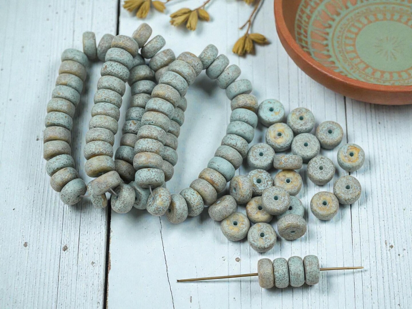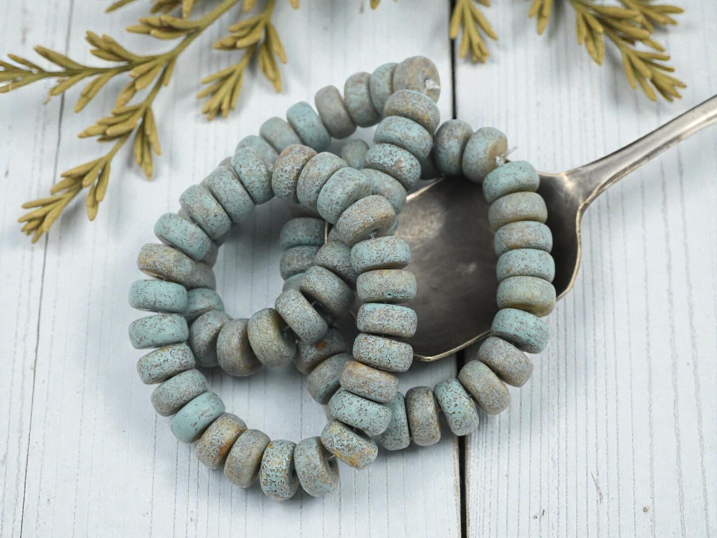 *25* 8x4mm Turquoise Washed Honey Beige Heishi Rondelle Beads