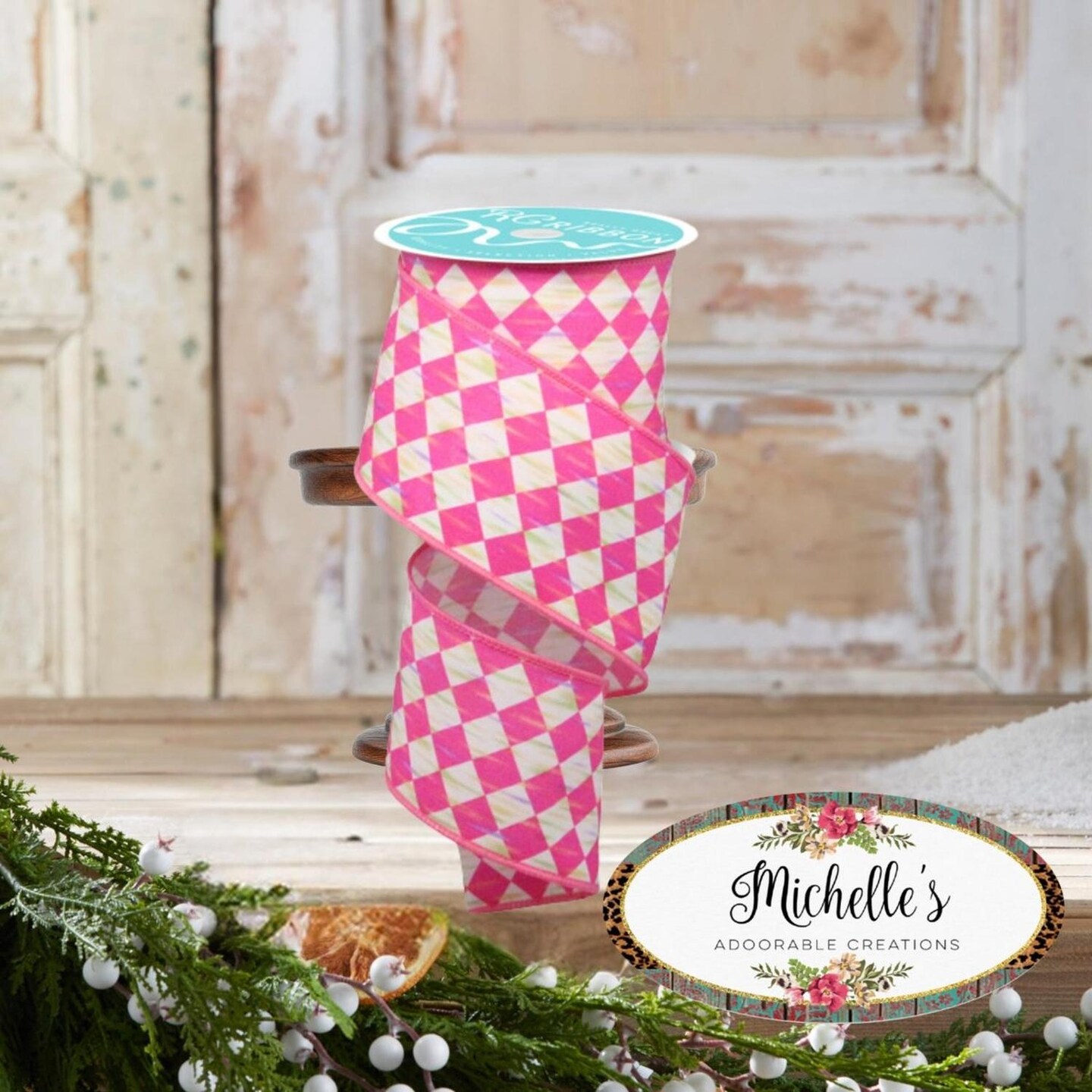 2.5" Antique Diamond Ribbon: Hot Pink (10 Yards)