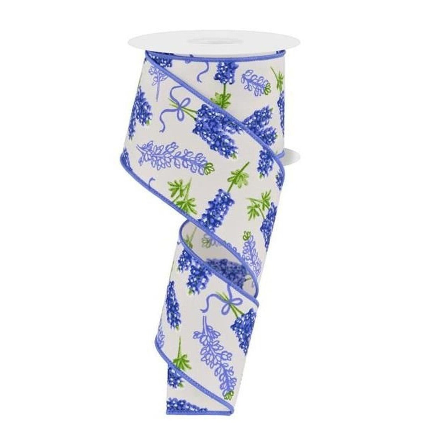 2.5" Bluebonnets Pattern Ribbon: Ivory (10 Yards)