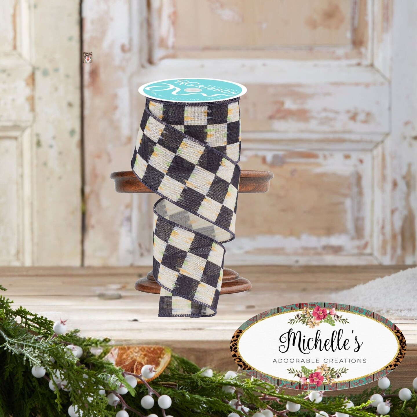 2.5" Bold Antique Checkerboard Ribbon: Black (10 Yards)