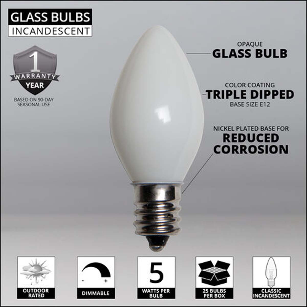 25 Bulbs - C7 Opaque White, 5 Watt lamp
