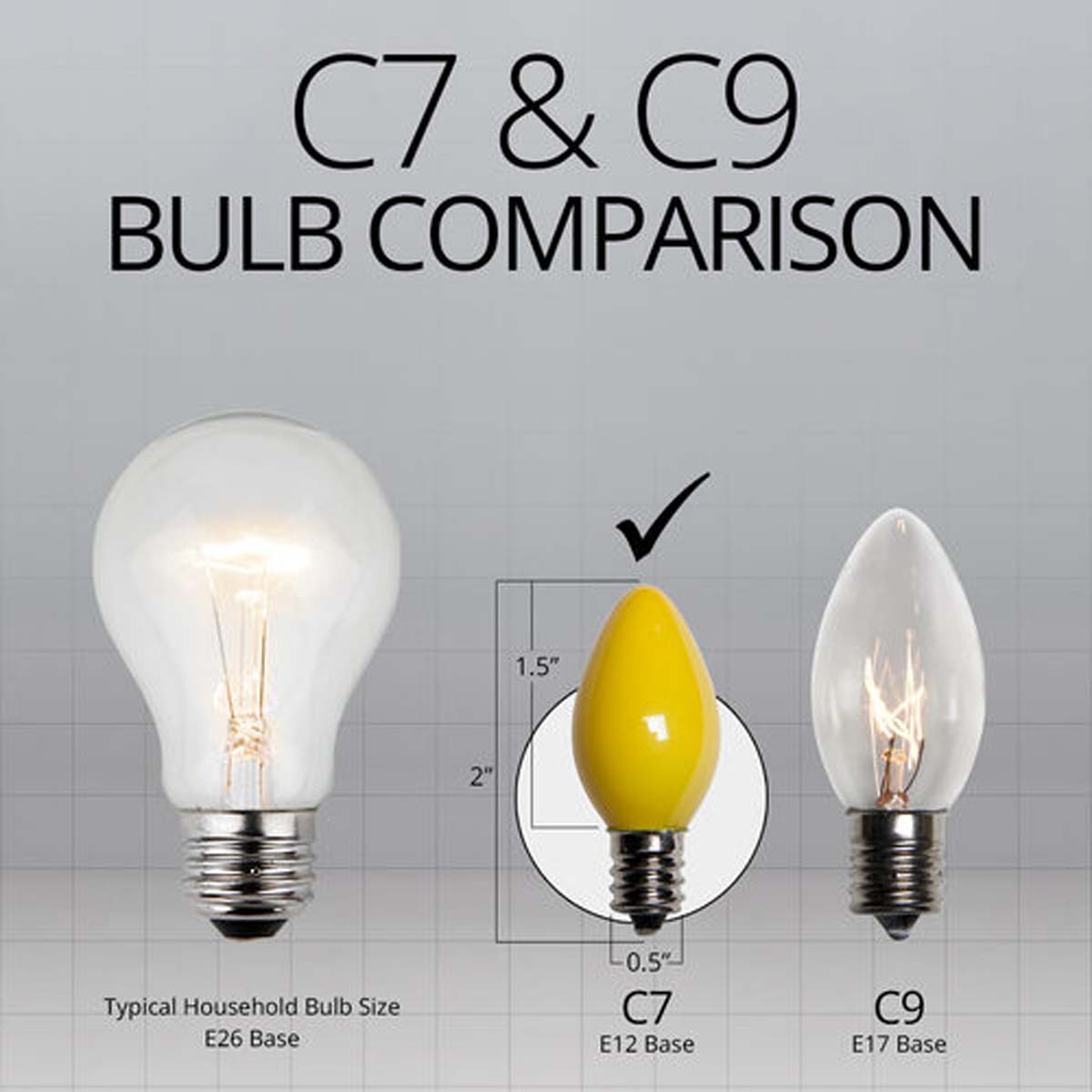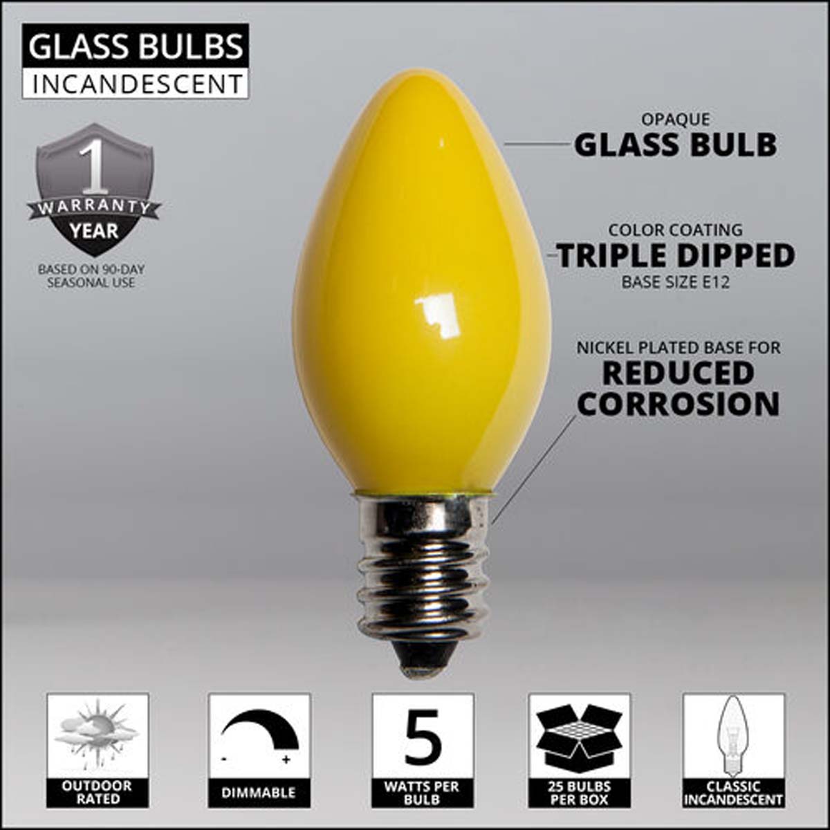 25 Bulbs - C7 Opaque Yellow, 5 Watt lamp