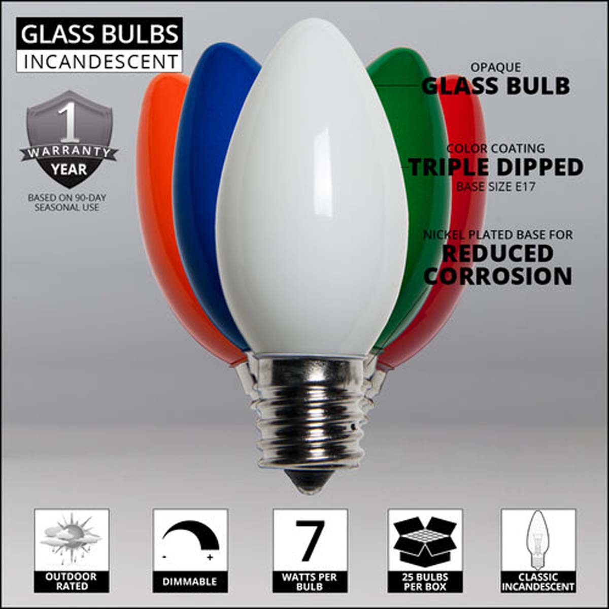 25 Bulbs - C9 Opaque Multicolor, 7 Watt lamp