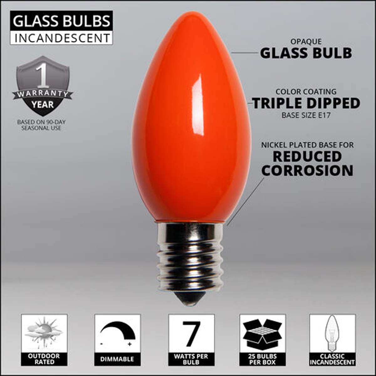 25 Bulbs - C9 Opaque Orange, 7 Watt lamp