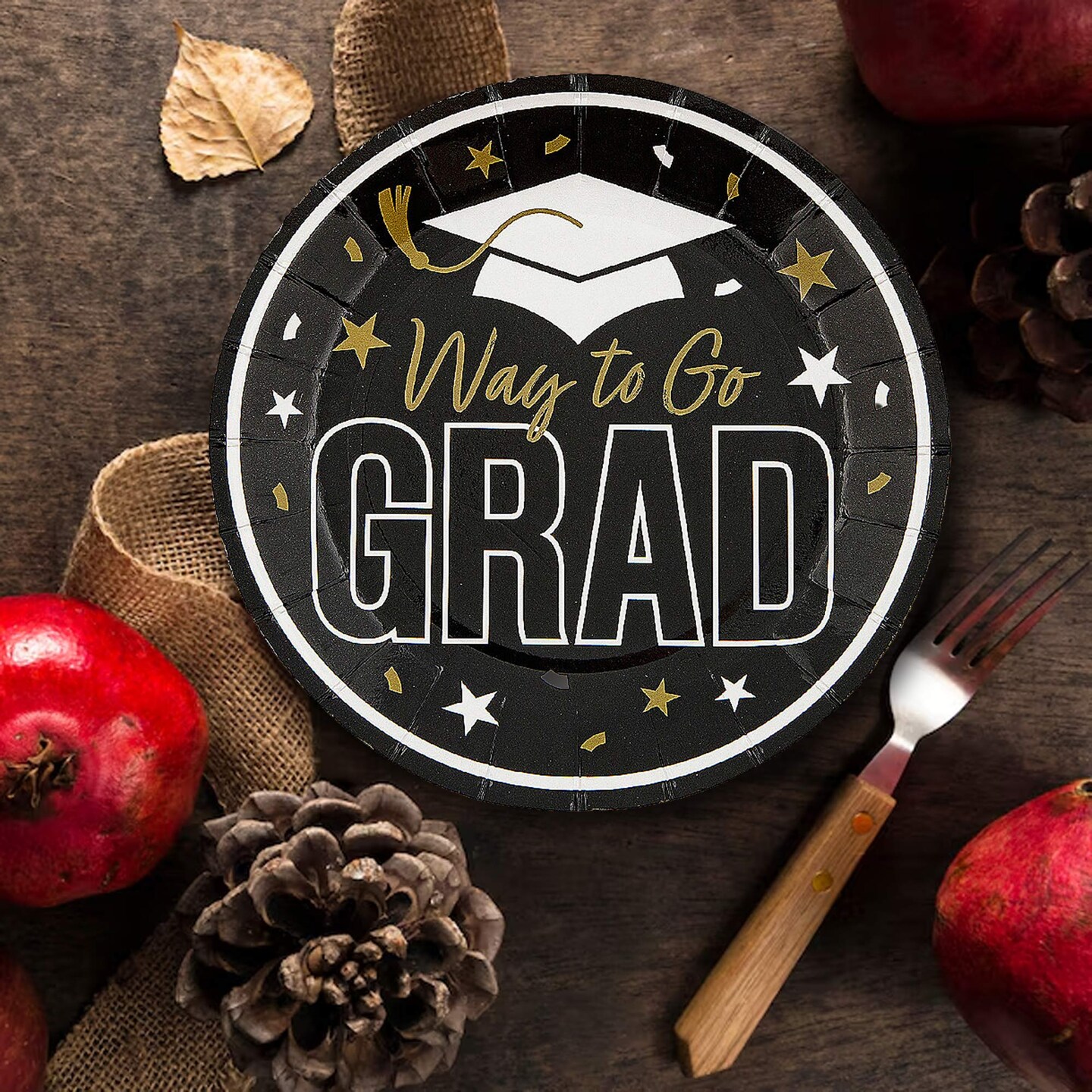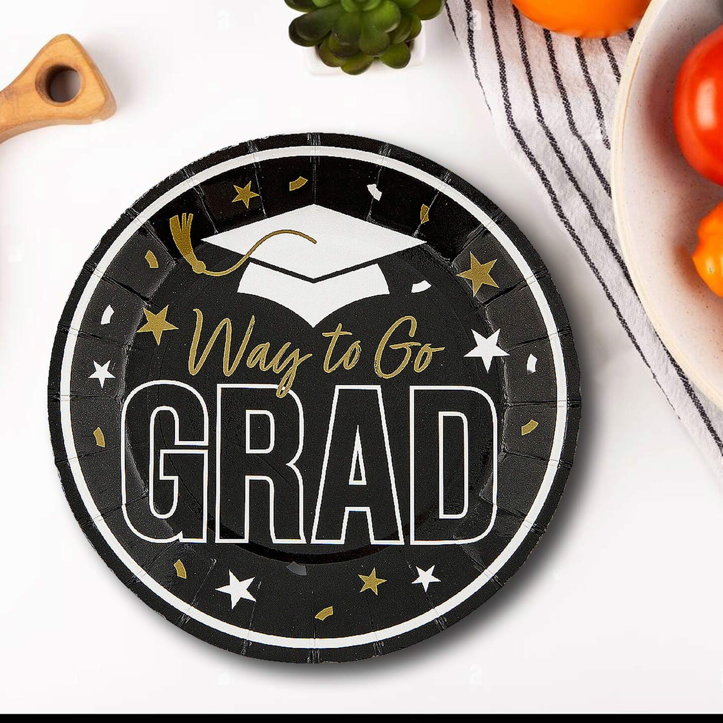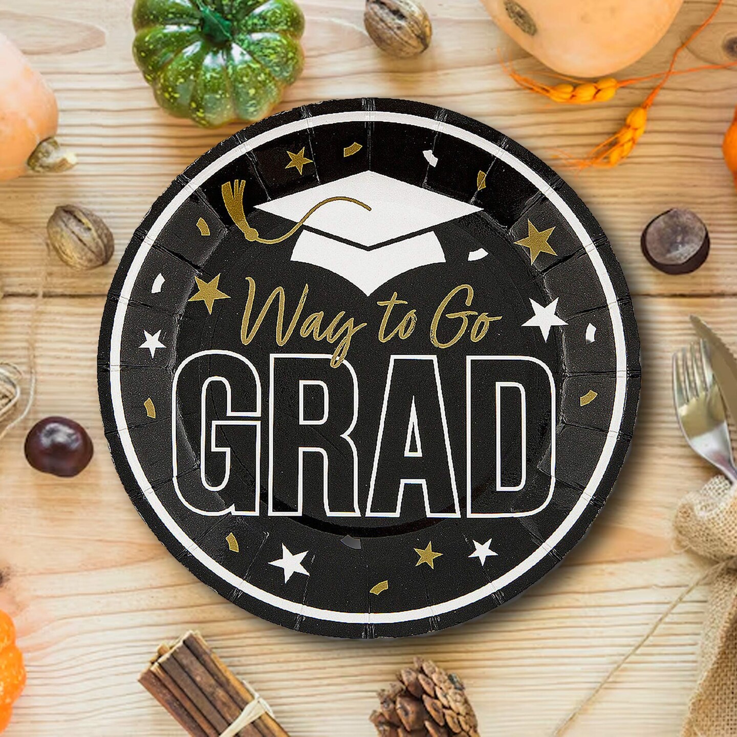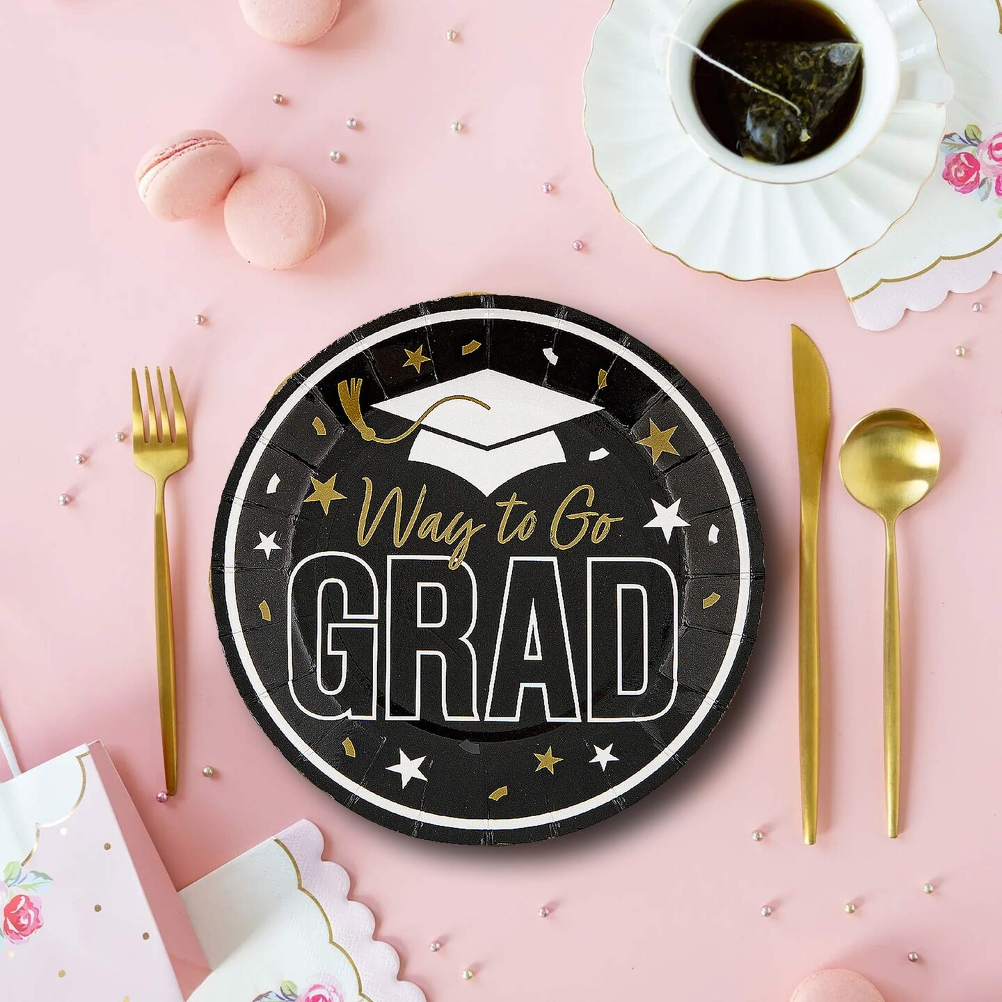 25 Count Black Graduation Dessert Plates Disposable Paper Party Supplies 7 1/4"