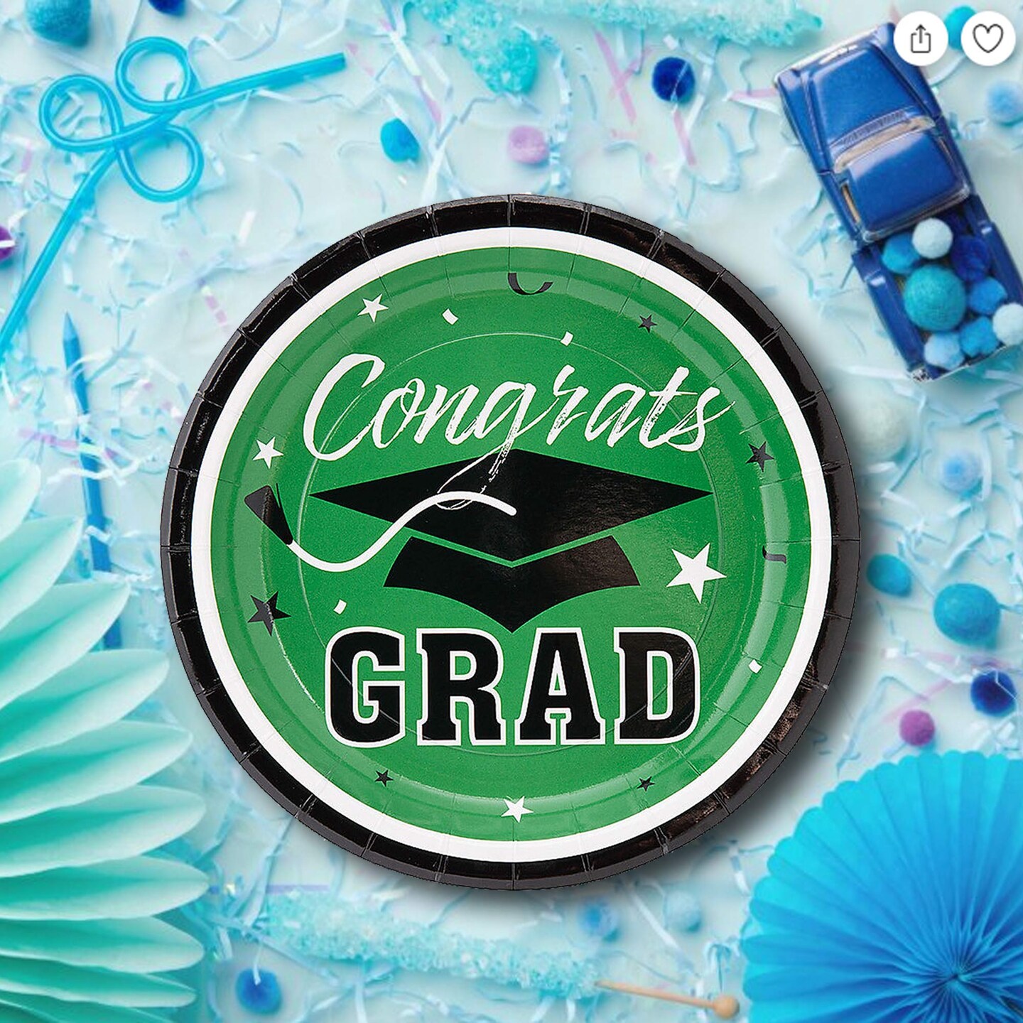 25 Count Green Graduation Party Dessert Plates Congrats Grad Celebrations 7 1/4"