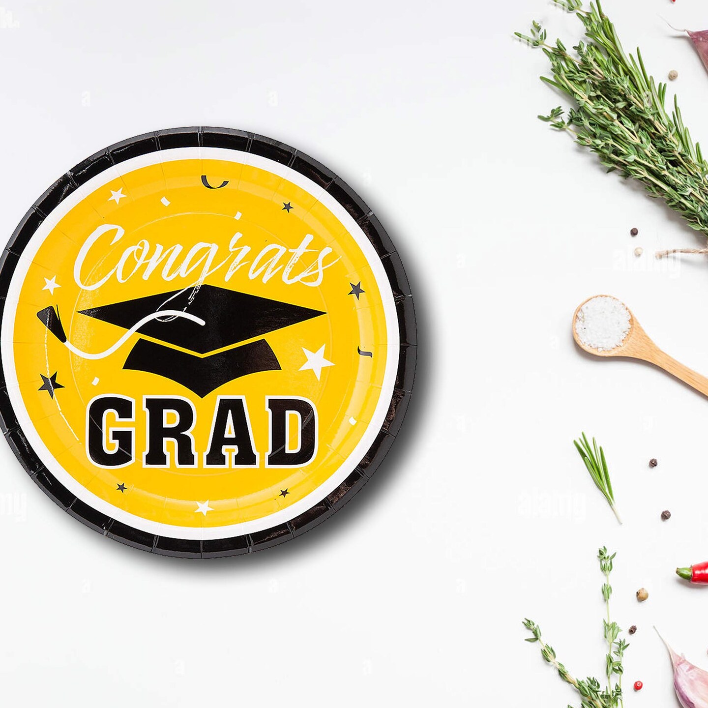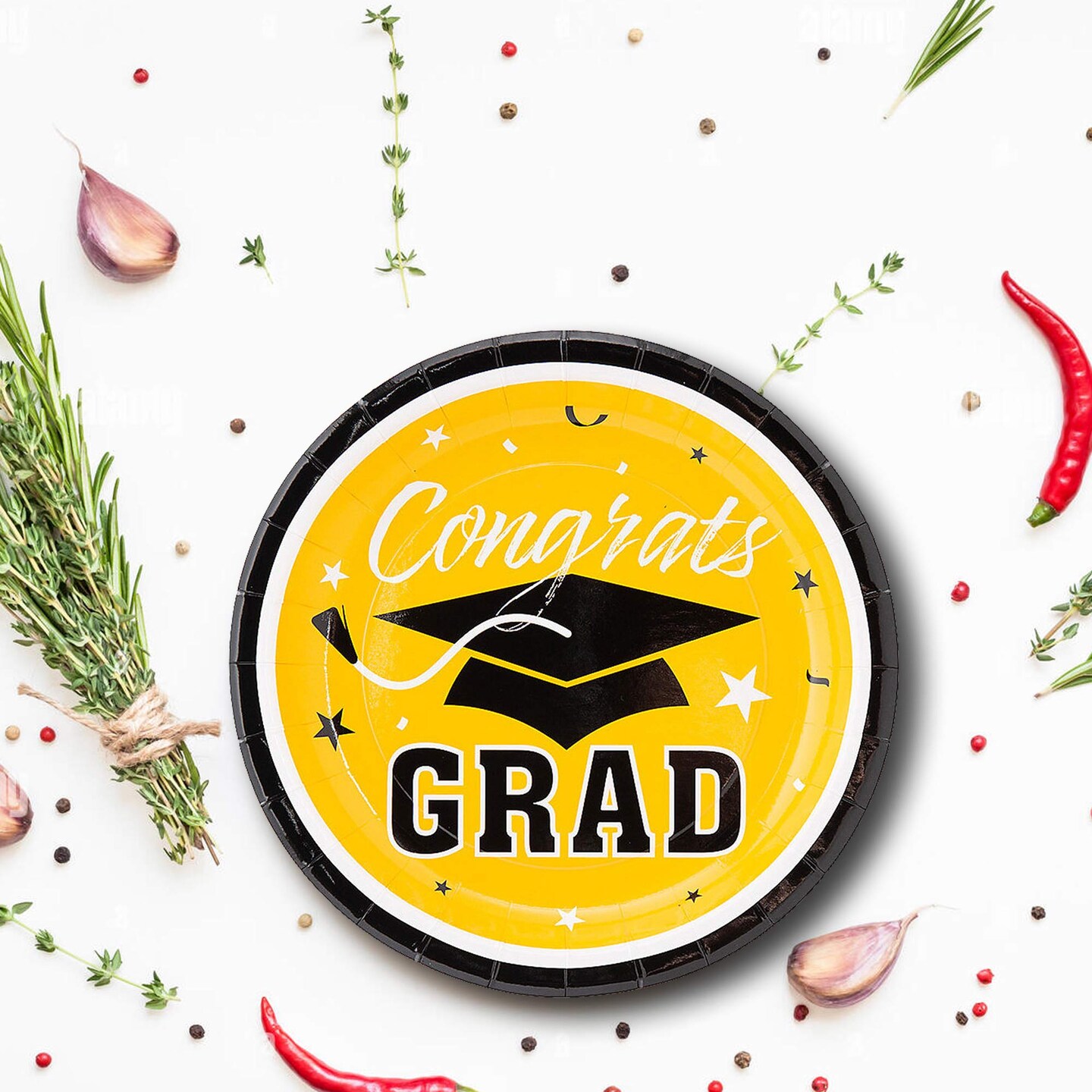 25 Count Yellow Congrats Grad Solid Color Paper Dessert Plates Disposable Party Plates 7 1/4"