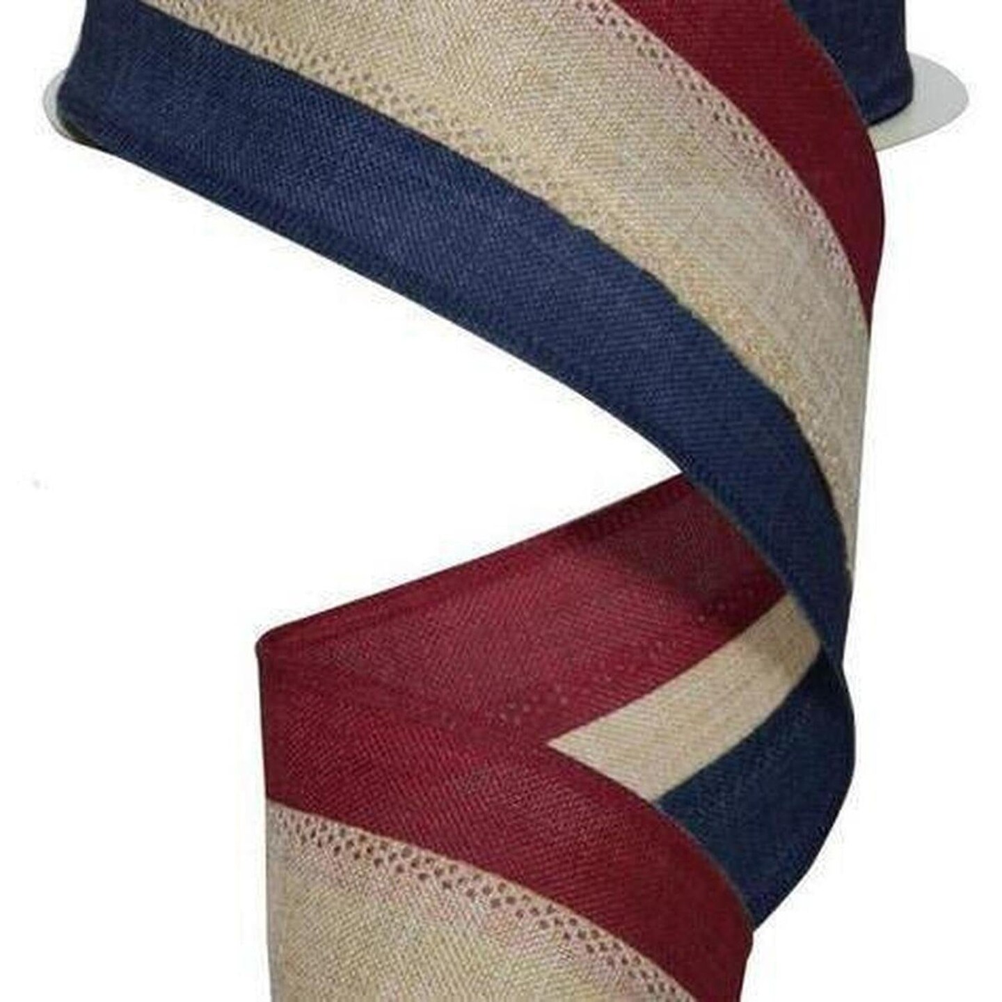 2.5" Faux Burlap Striped Ribbon: Burgundy, Beige, Navy (10 Yards)