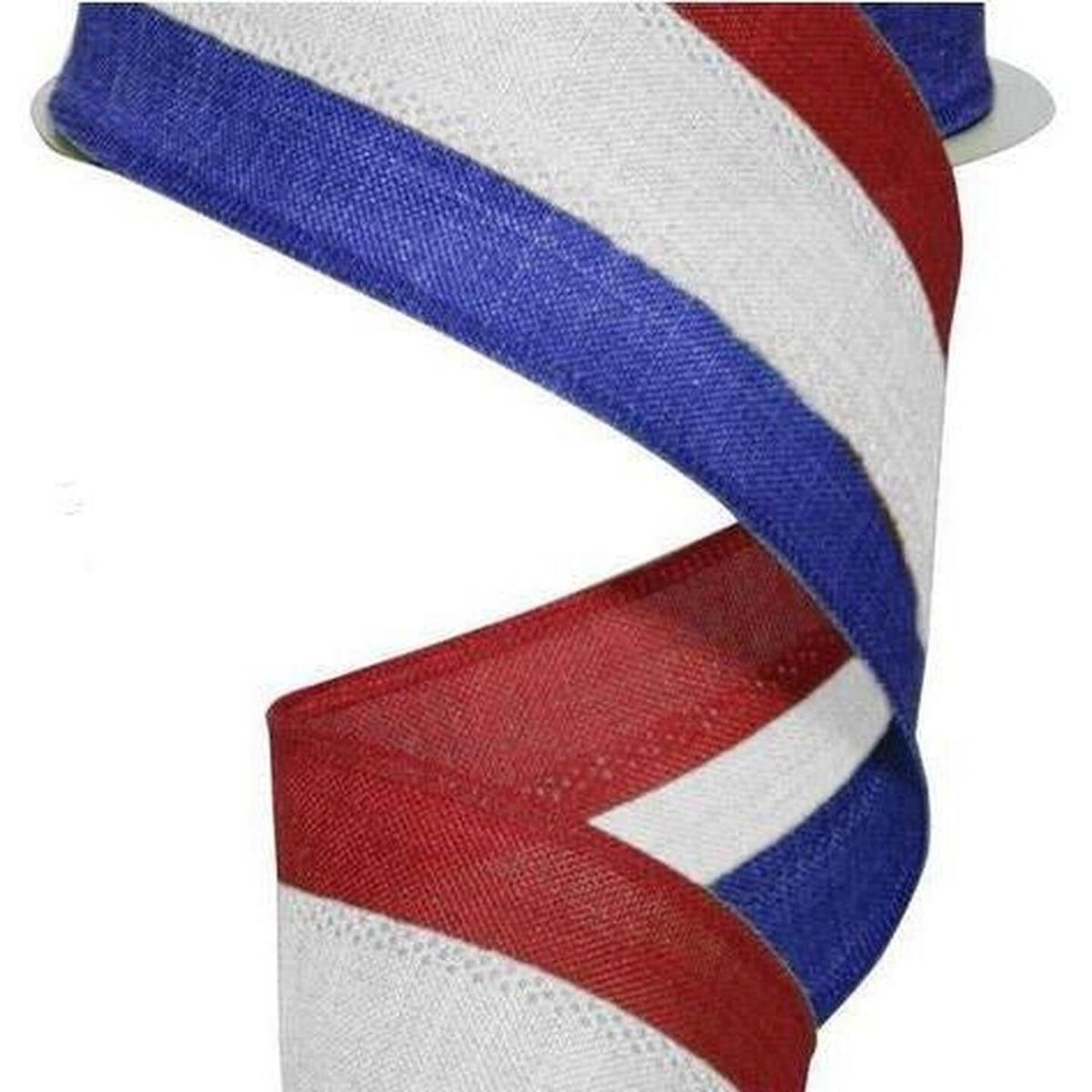 2.5" Faux Burlap Striped Ribbon: Red, White, Blue (10 Yards)