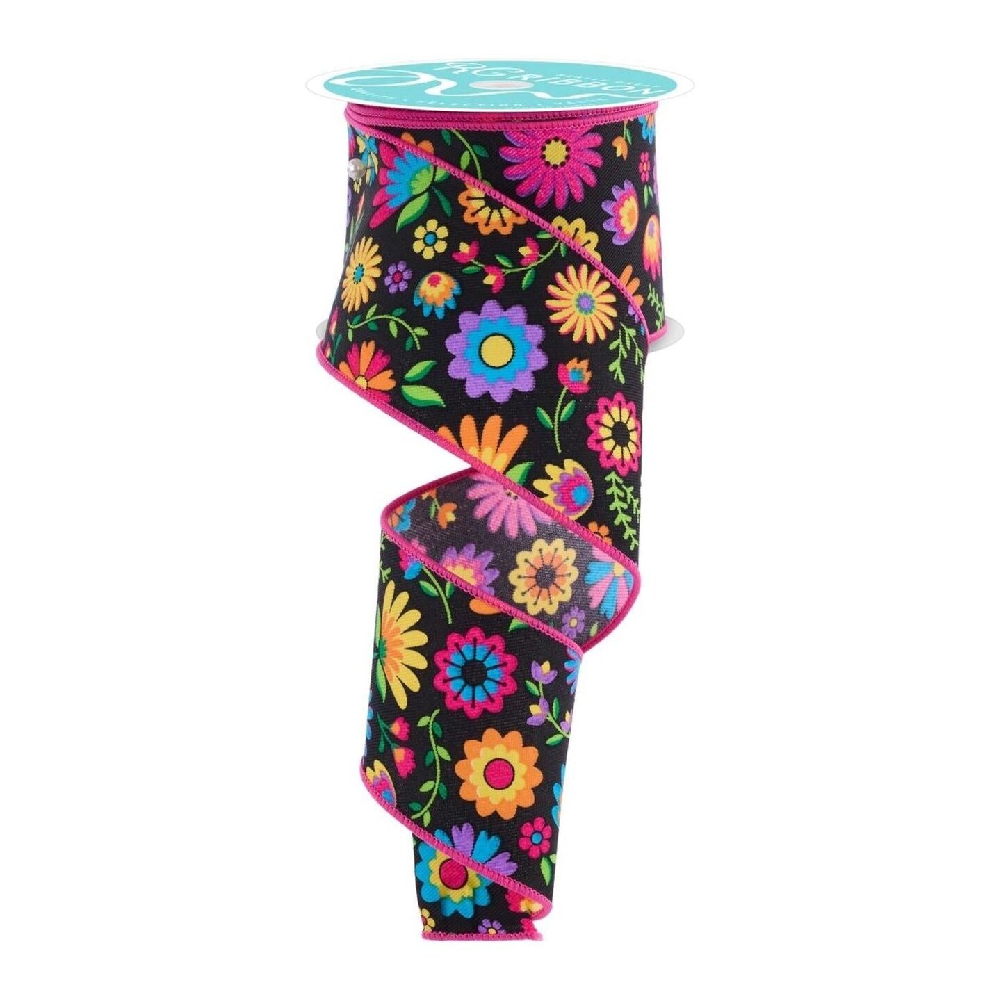 2.5" Fiesta Florals Ribbon: Black (10 Yards)