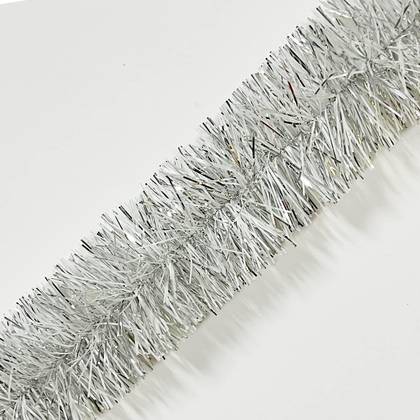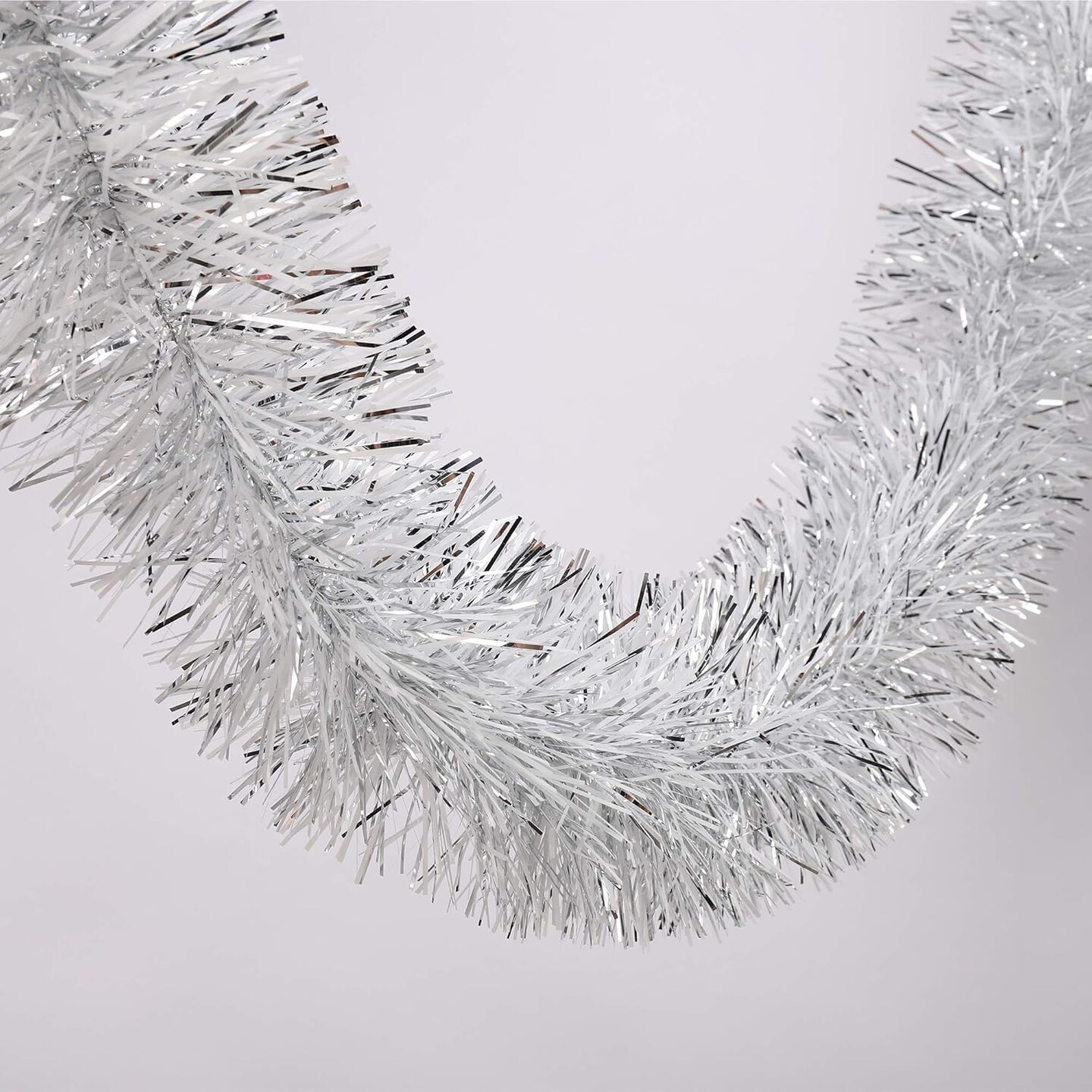 25 ft Long Roll Silver & White Tinsel Twist Garland, Shiny Metallic Foil Decorations for Christmas Eve, New Year Parties (4" x 25' roll, Silver & White)