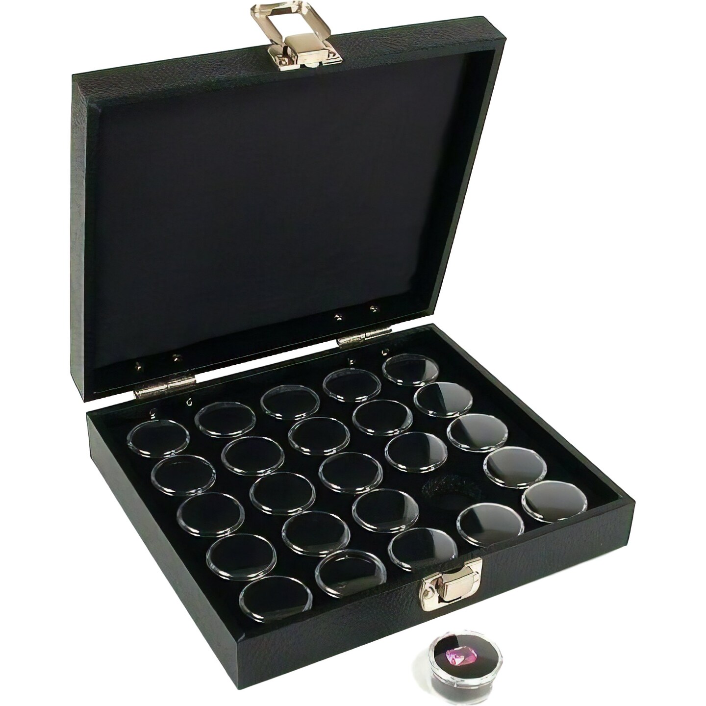 25 Gem Jars Black Display Tray Gemstone Travel Case