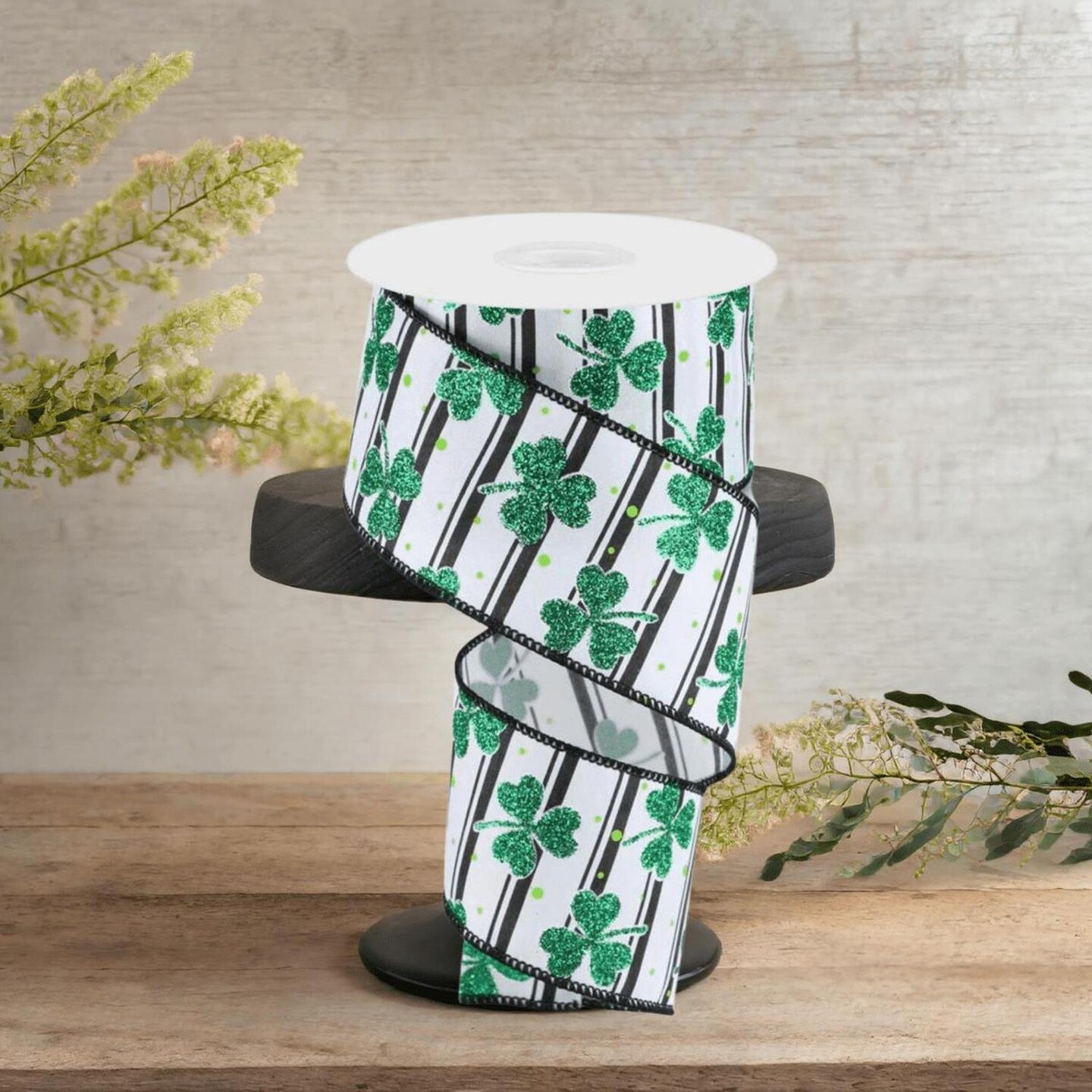 2.5" Glitter Shamrock Ribbon: Dots/Stripes (10 Yards)