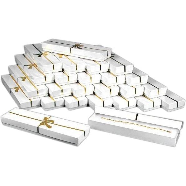 25 Gold Bow White Cotton Boxes Bracelet Gift Display