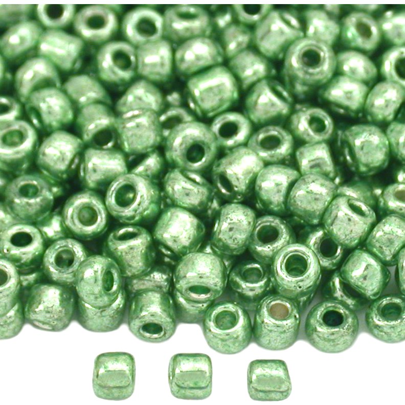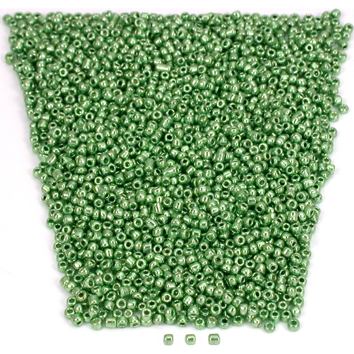 25 Grams Metallic Lt Green Opaque Glass Seed Beads 12/0