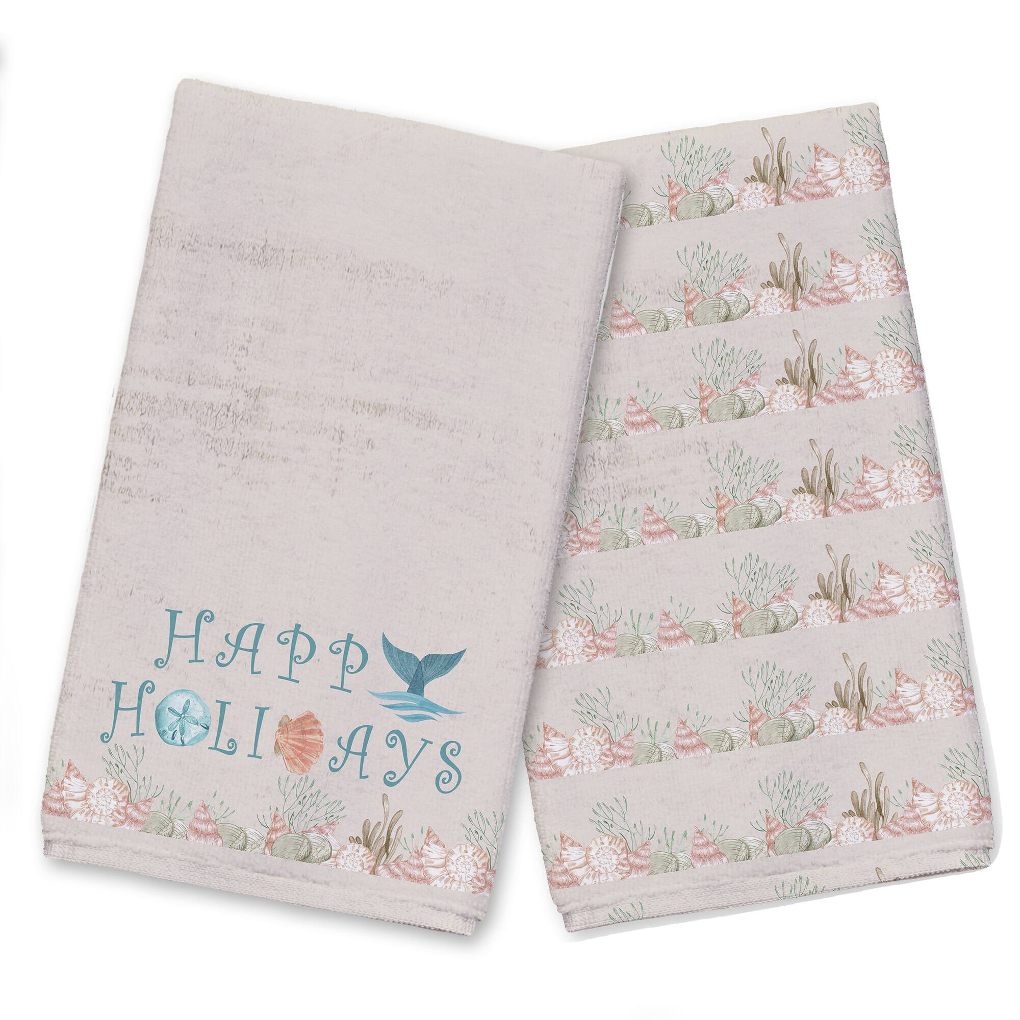 25" Happy Holidays Coastal Christmas Tea Towel Set
