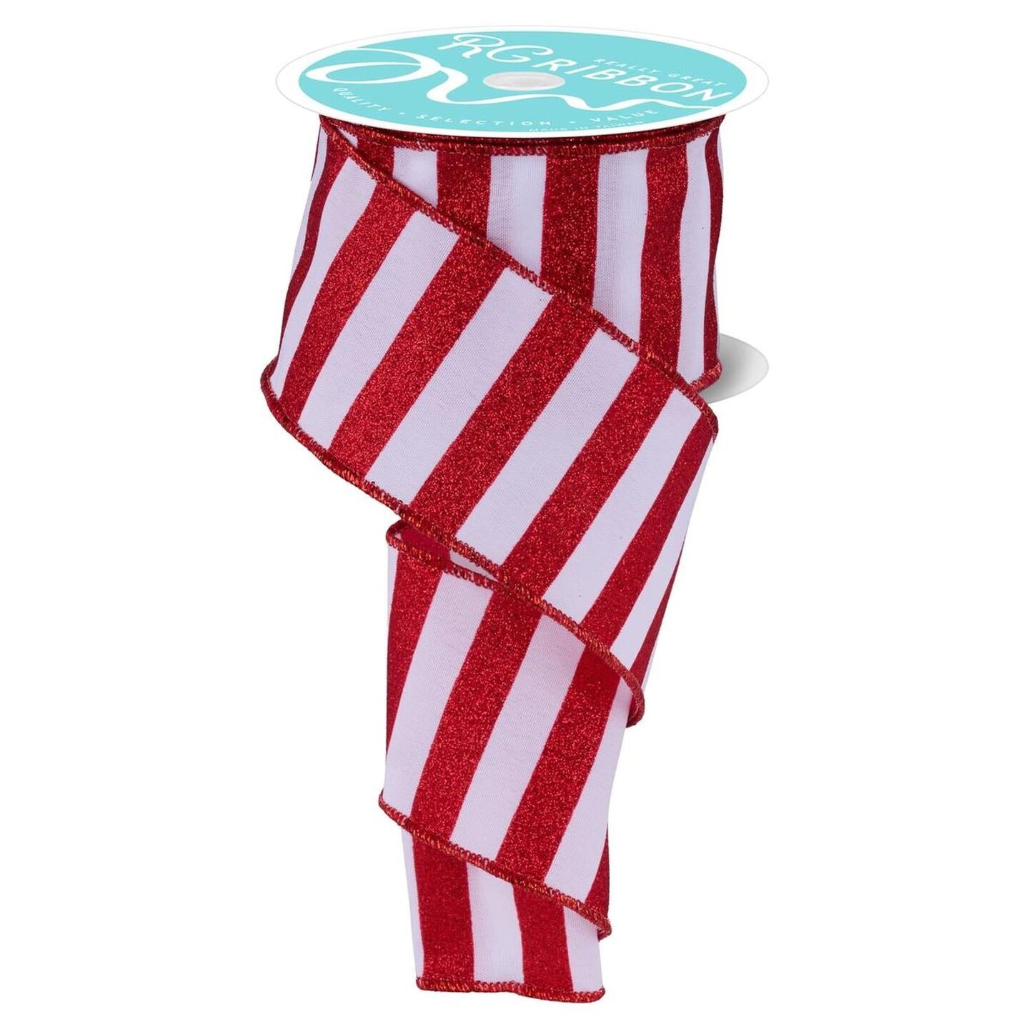 2.5" Horizontal Glitter Stripes Ribbon: Red & White (10 Yards)