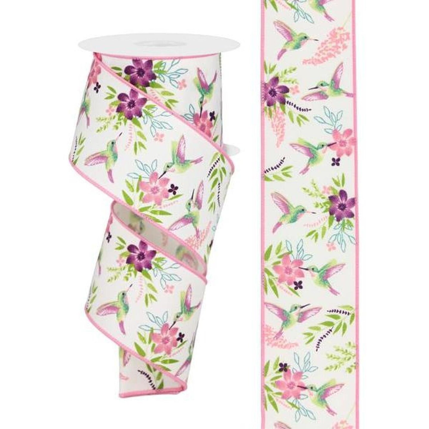 2.5" Hummingbirds Ribbon: Ivory (10 Yards)