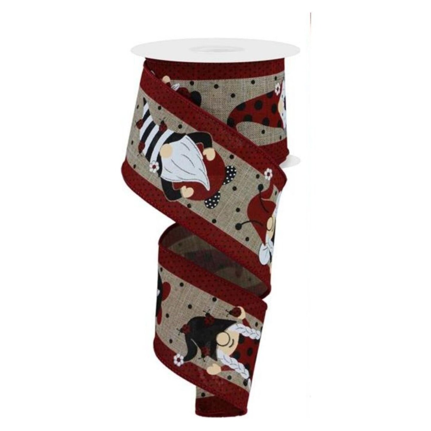 2.5" Ladybug Gnome Ribbon: Light Beige (10 Yards)