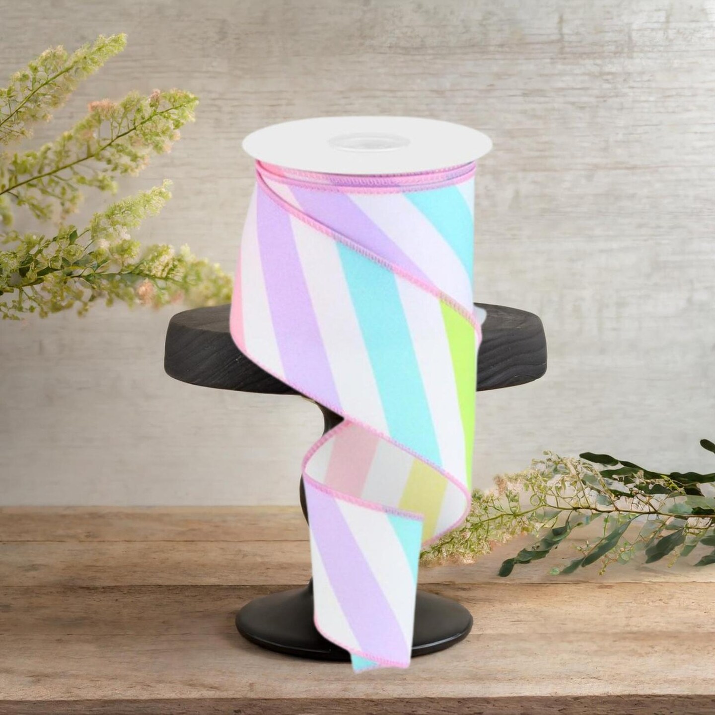 2.5" Large Multi Diagonal Stripe Ribbon: White (10 Yards)