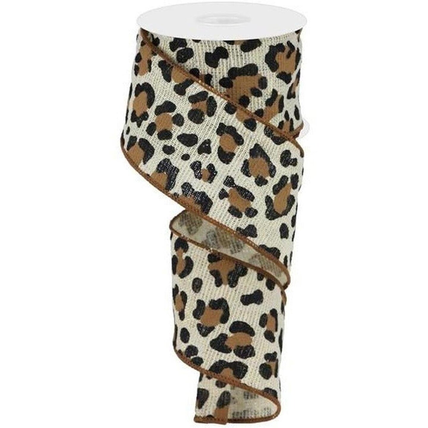 2.5" Leopard Print Ribbon: Ivory (10 Yards)