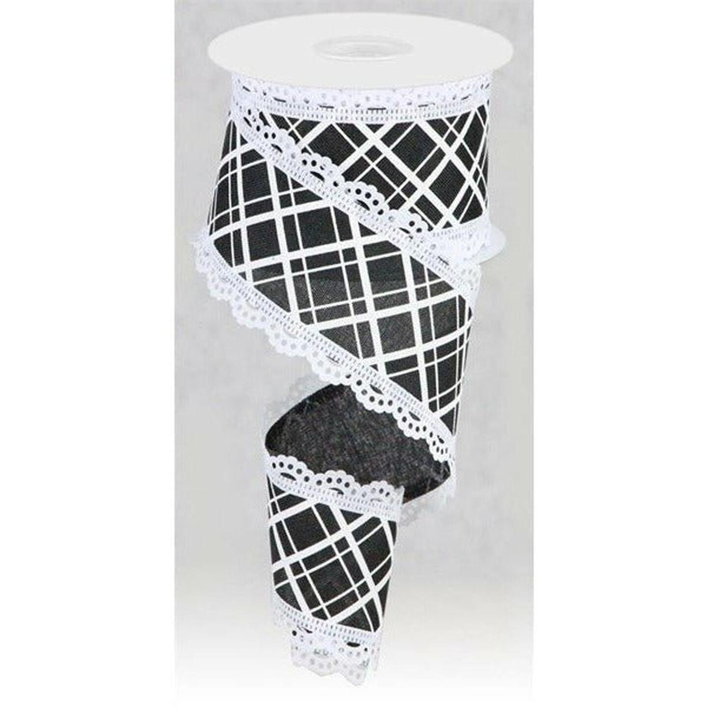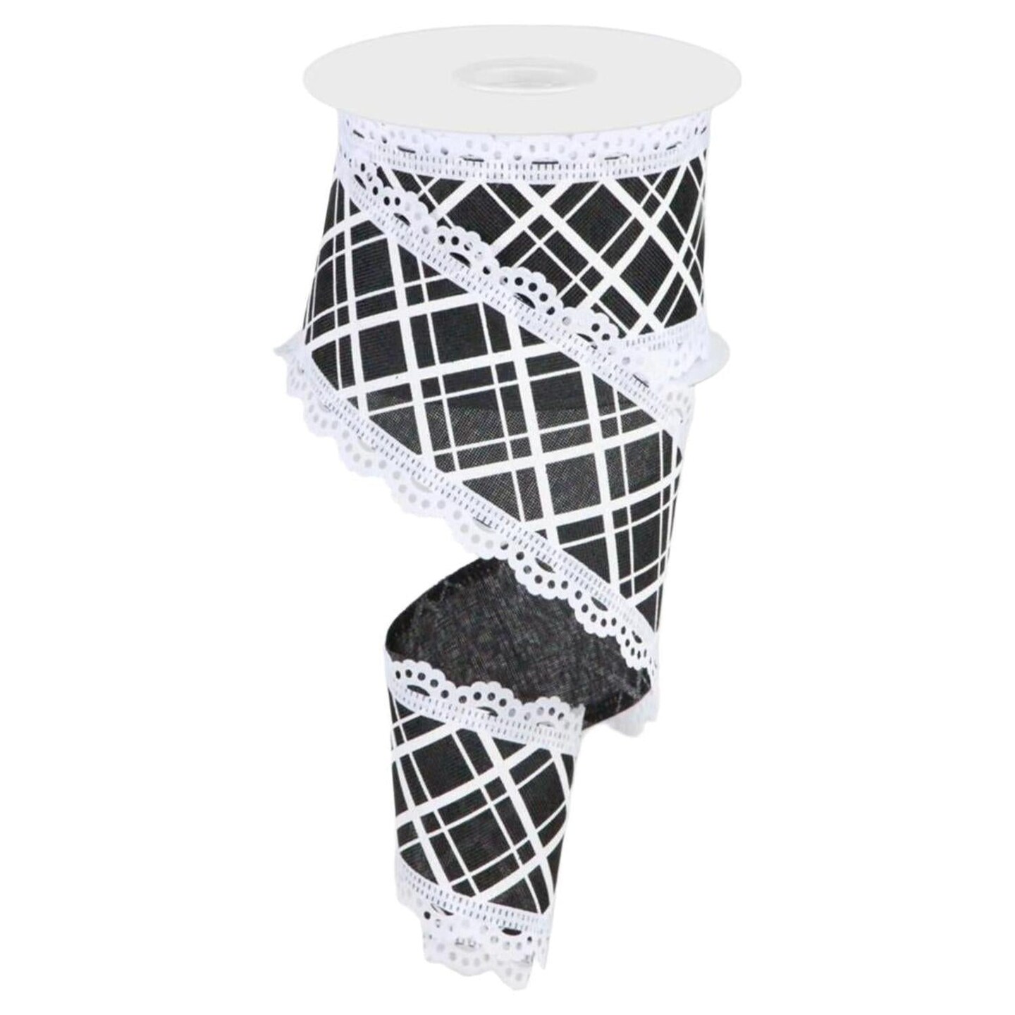 2.5" Line Check Lace Ribbon: Black/White (10 Yard)