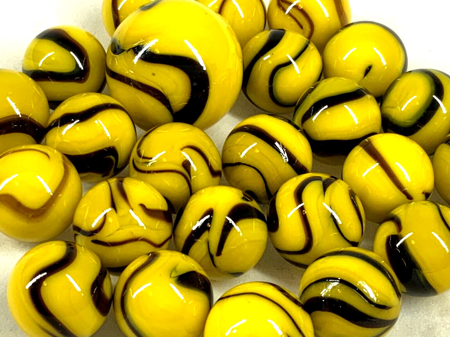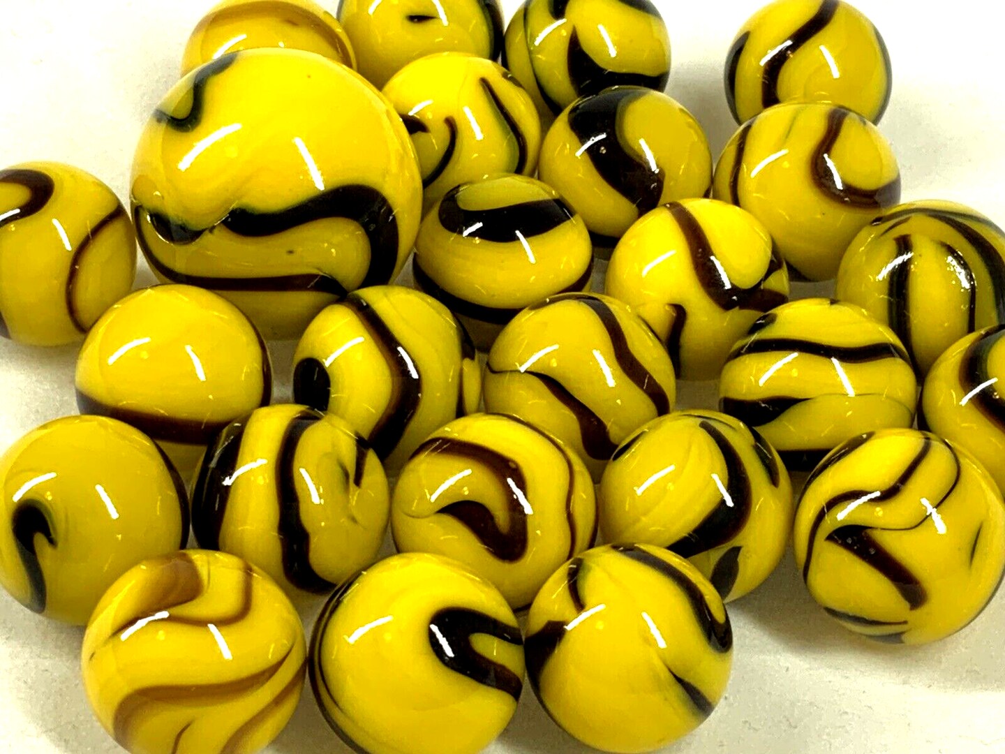 25 Marbles BUMMBLE BEE Stripes Yellow/Black Glass game pack Shooter Swirl