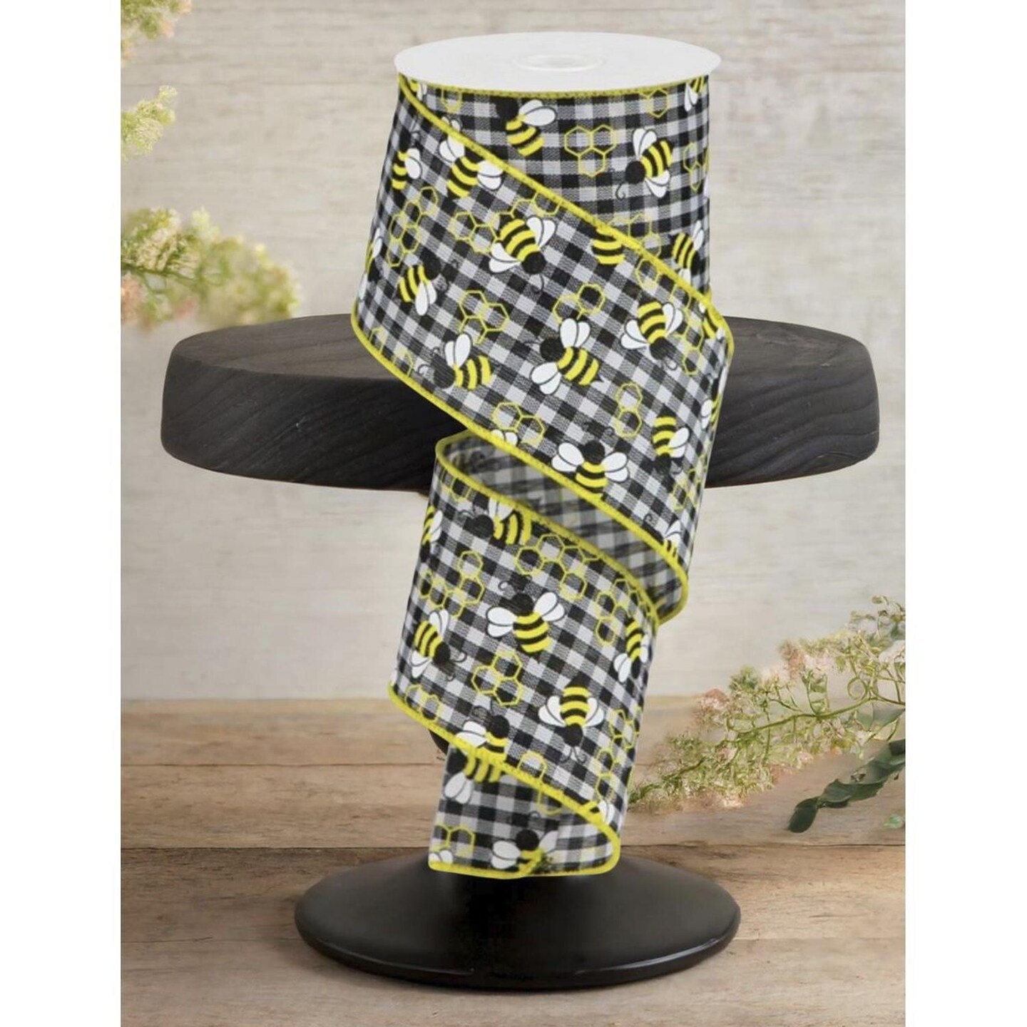 2.5" Mini Bumblebees on Royal Ribbon: Gingham Check (10 Yards)