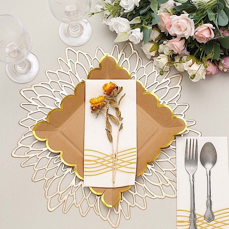 25 Natural 9" Square Disposable Dinner Paper PLATES Gold Scalloped Trim