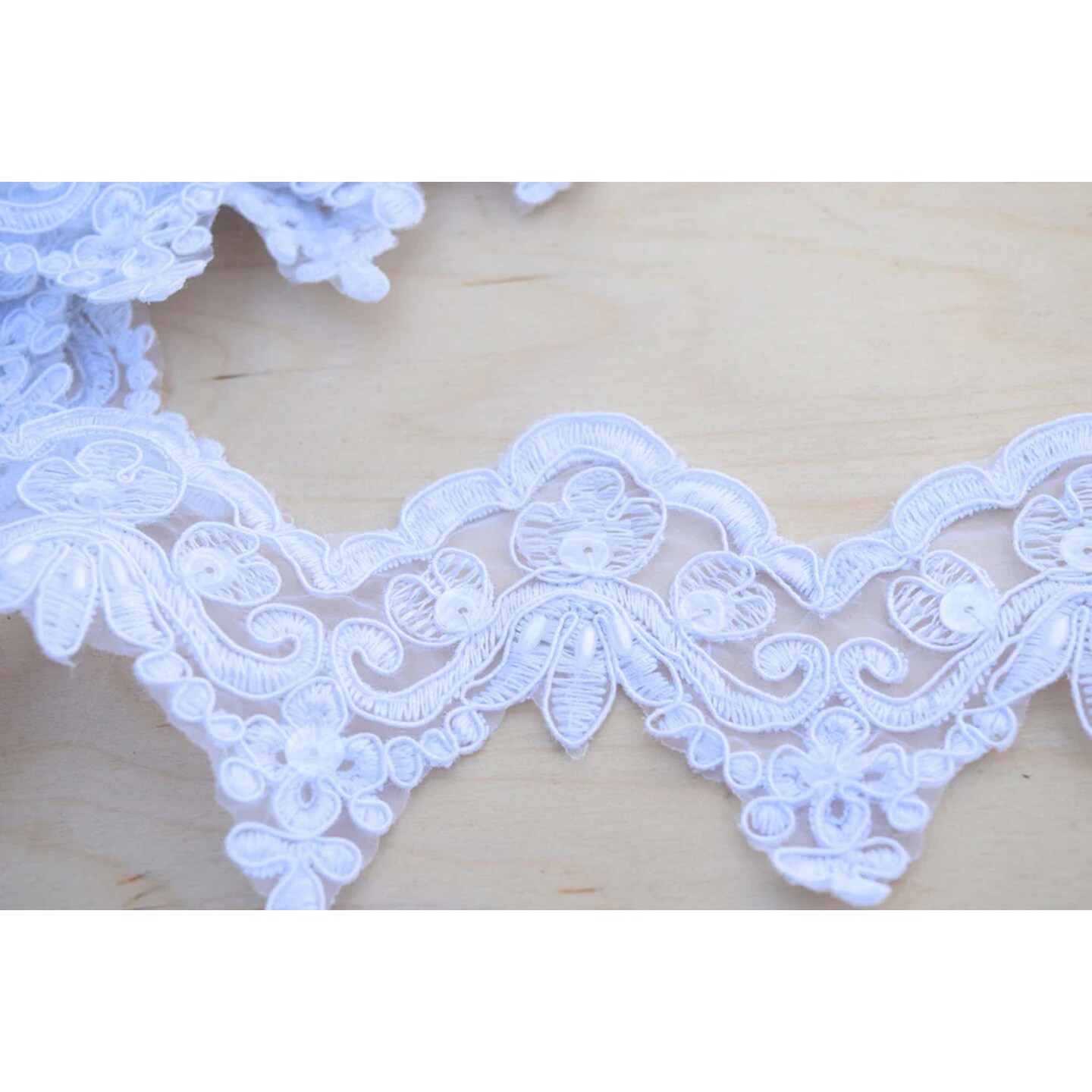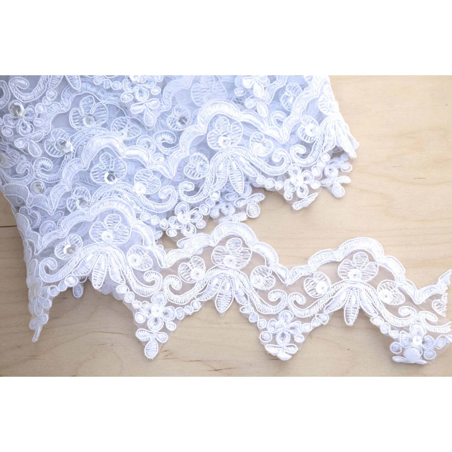 2.5" Optic White Bridal Lace Trim Pearl & Sequin Embellished Organza for Veils & Wedding Gowns